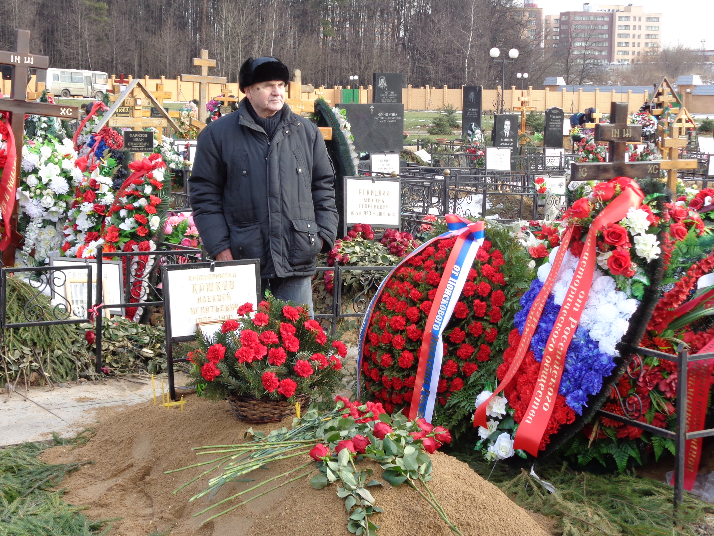 Останки красноармейца Крюкова наши украинские поисковики. Связались со своими российскими коллегами, которые отыскали потомков погибшего героя. Вскоре останки защитника Отечества были доставлены сотрудниками Российского военно-исторического общества в Москву, где сейчас живет его дочь Анна Алексеевна. Было принято решение перезахоронить красноармейца Крюкова на Троекуровском кладбище.