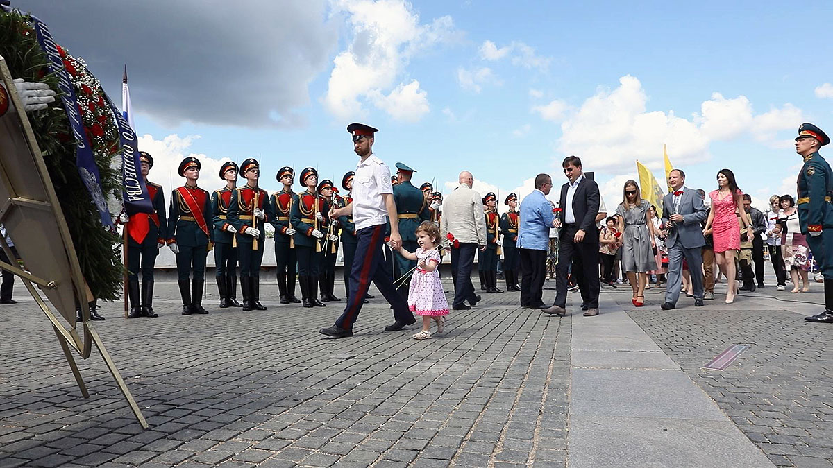 В мероприятии приняли участие: делегация Российского военно-исторического общества, представители Музея Победы, активисты из общественных и молодежных организаций, оркестр и рота почетного караула 154-го Отдельного комендантского Преображенского полка.