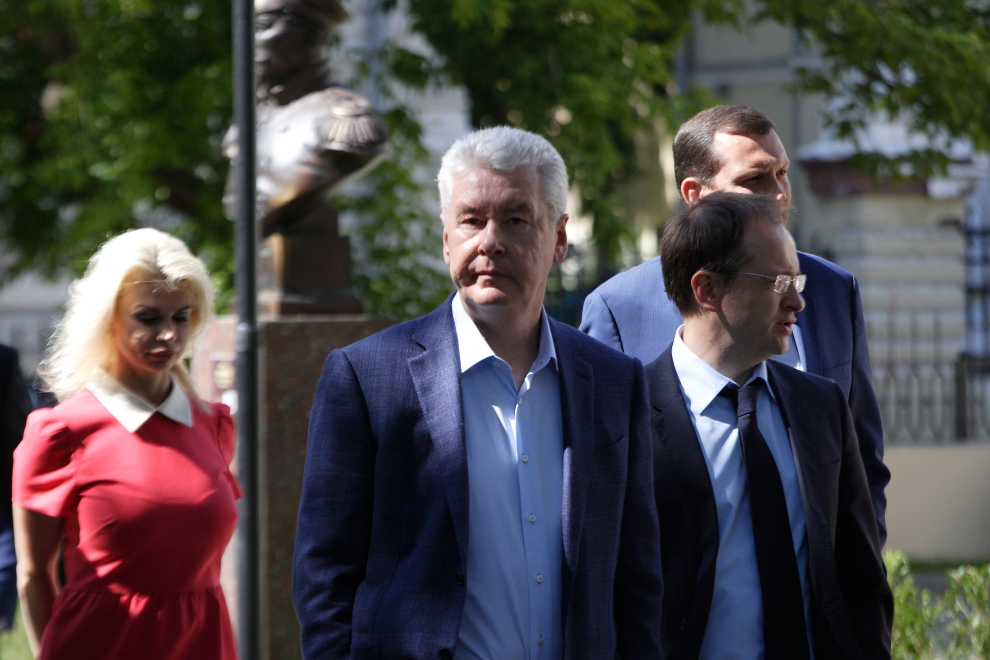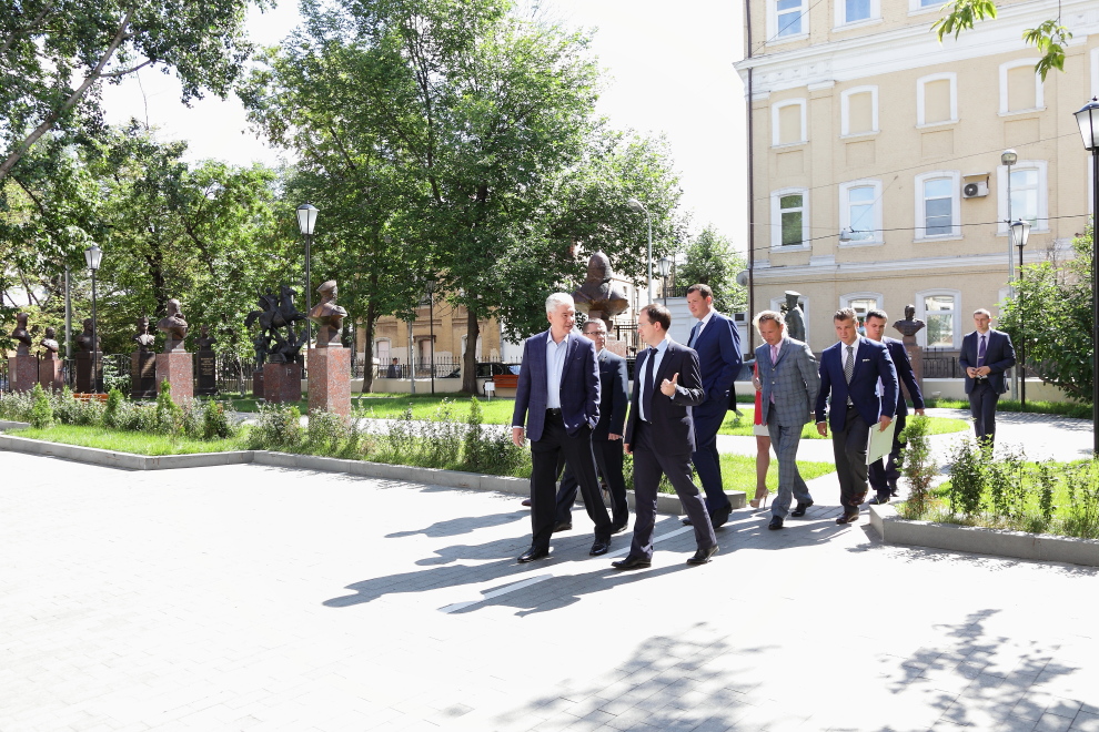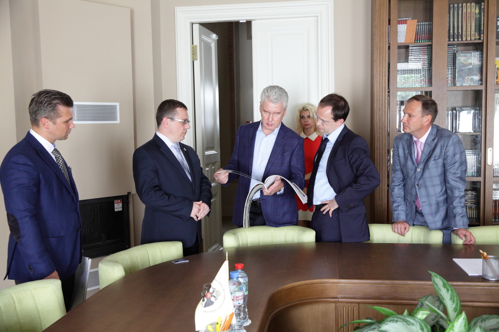 Мэр Москвы Сергей Собянин вместе с Министром культуры Российской Федерации, Председателем РВИО Владимиром Мединским, посетили Исполнительную дирекцию Российского военно-исторического Общества в Архангельском переулке.