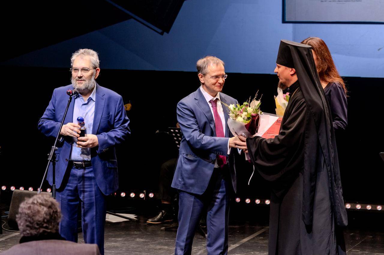 Владимир Мединский лично поздравил обладателей главного приза конкурса. Он был присужден авторскому коллективу «Православной энциклопедии» под редакцией Патриарха Московского и всея Руси Кирилла.