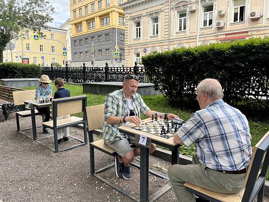 В рамках сотрудничества Федерации шахмат России и Российского военно-исторического общества продолжается работа шахматной зоны на Гоголевском бульваре. В воскресенье там прошёл блицтурнир, собравший 20 участников разных возрастов. Они сыграли 7 туров по швейцарской системе.