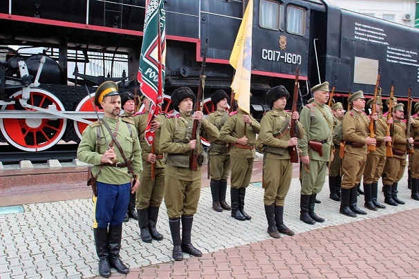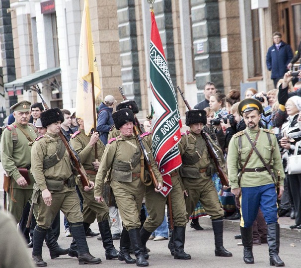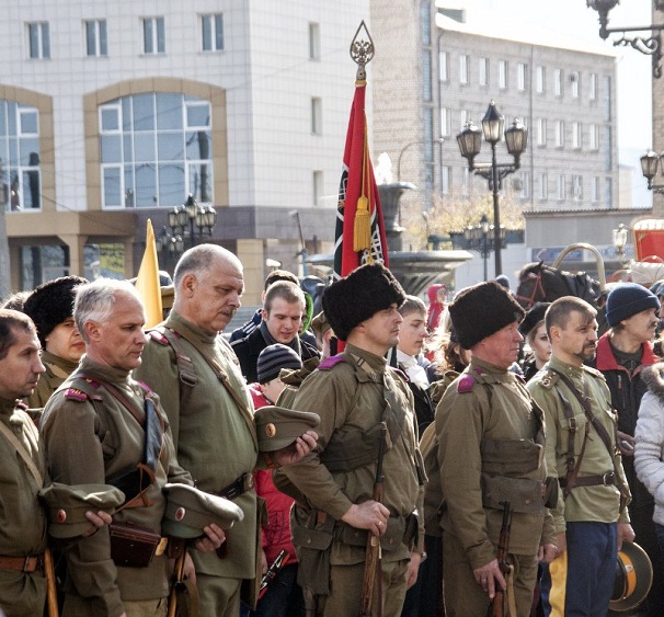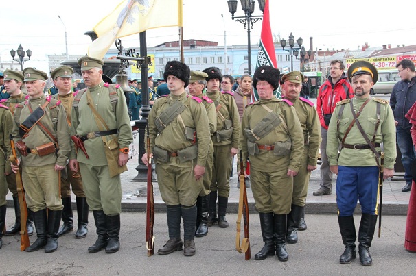 В Красноярске хотят увековечить память об участниках Первой мировой войны - бойцах 8-й Сибирской стрелковой дивизии. Недавно в центре города, при поддержке Российского военно-исторического общества, состоялась масштабная реконструкция проводов на фронт Первой мировой - солдат 30-го Сибирского стрелкового полка, входящего в состав 8-й Сибирской стрелковой дивизии. В реконструкции приняли участие около ста членов военно-исторических клубов - не только Красноярска, но Лесосибирска и Минусинска.