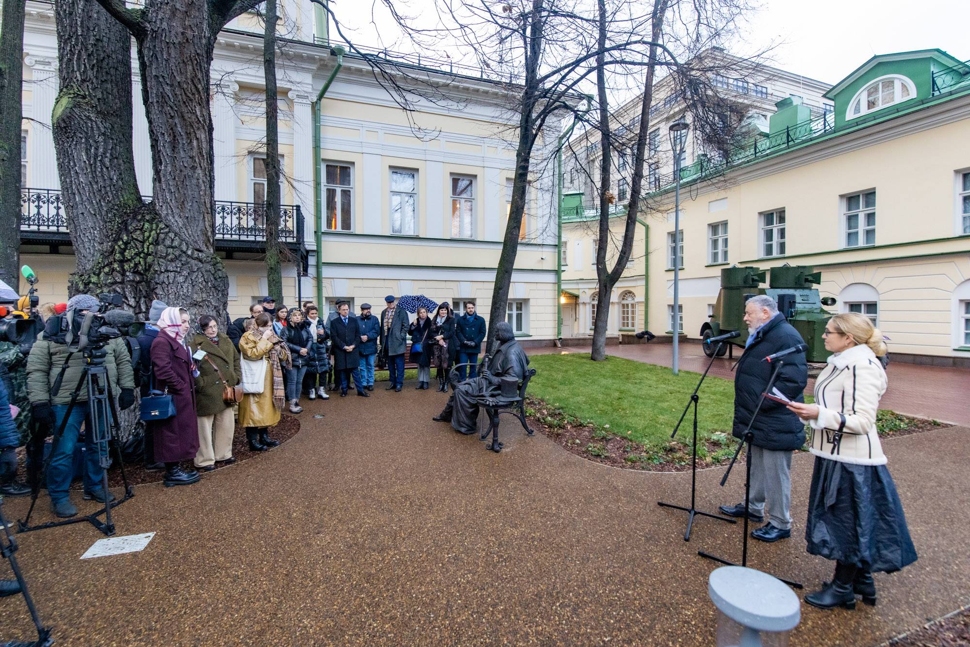 На территории усадьбы Васильчиковых в центре Москвы, где расположен Музей военной формы Российского военно-исторического общества, в пятницу состоялось торжественное открытие арт-объектов – скульптур известных писателей Николая Гоголя и Михаила Булгакова, а также открытие Книжного клуба «Достоевский».