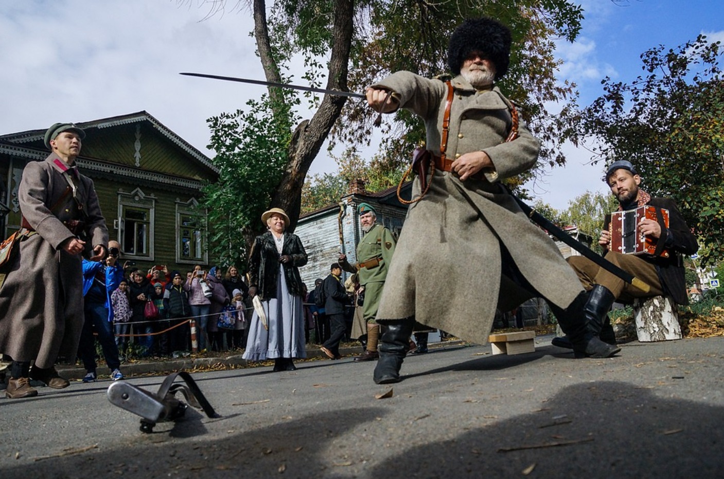 Здесь состоялась реконструкция событий, охвативших город сто лет назад. В начале октября 1918 года части Красной Армии с боями вошли в него и восстановили Советскую власть. Основные действия «Оживших страниц истории» в этом году проходили в мемориальной зоне музея им. Алабина.