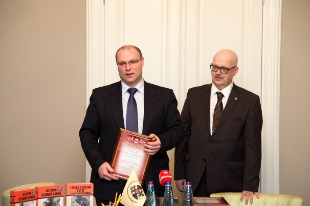 В Российском военно-историческом обществе состоялась презентация издательских проектов по военной истории Отечества. Книги, издаваемые под грифом «Российская военно-историческая библиотека» представил научный директор РВИО Михаил Мягков. Об издательском проекте «Военная история Российского государства» рассказали генеральный директор Русского биографического института Леонтий Миронов и руководитель авторского труда «Россия и Европа в огне Первой мировой войны» Дмитрий Суржик