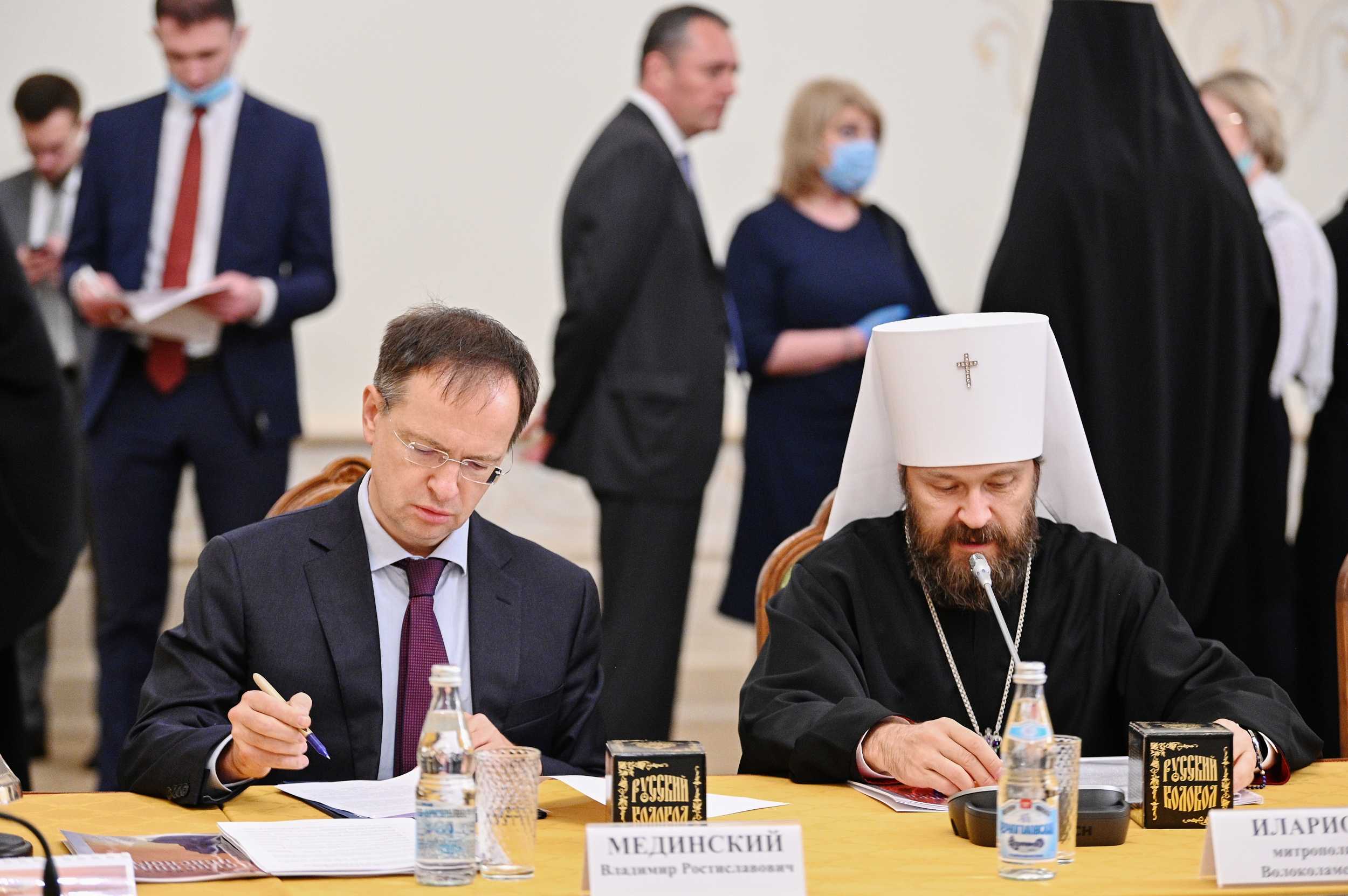 В совещании приняли участие: Председатель Патриаршего совета по культуре, митрополит Псковский и Порховский Тихон (Шевкунов); помощник Президента Российской Федерации, председатель Российского военно-исторического общества Владимир Мединский; полномочный представитель Президента Российской Федерации в Центральном федеральном округе Игорь Щёголев; министр культуры РФ Ольга Любимова; министр просвещения РФ Сергей Кравцов; министр науки и высшего образования РФ Валерий Фальков.