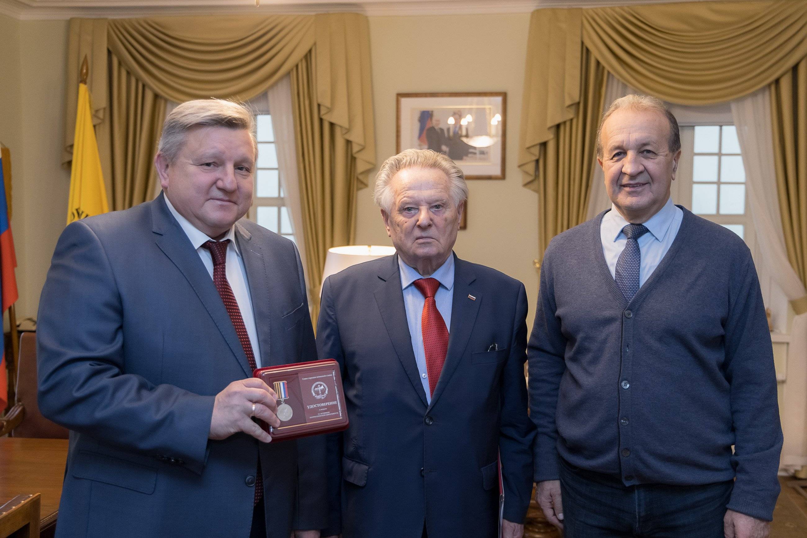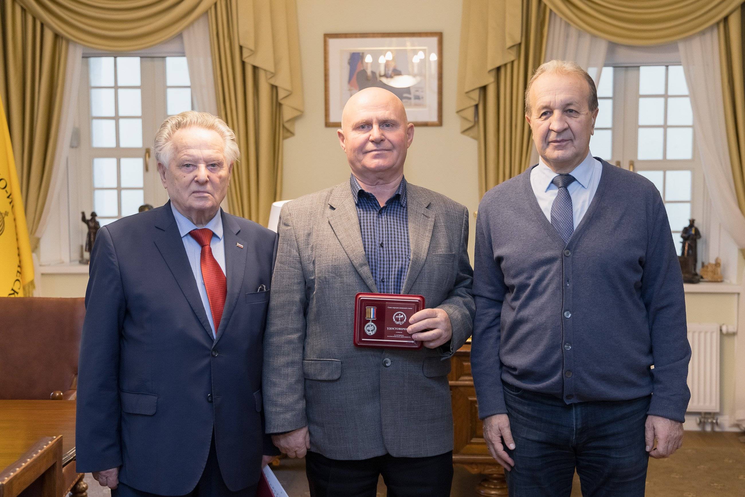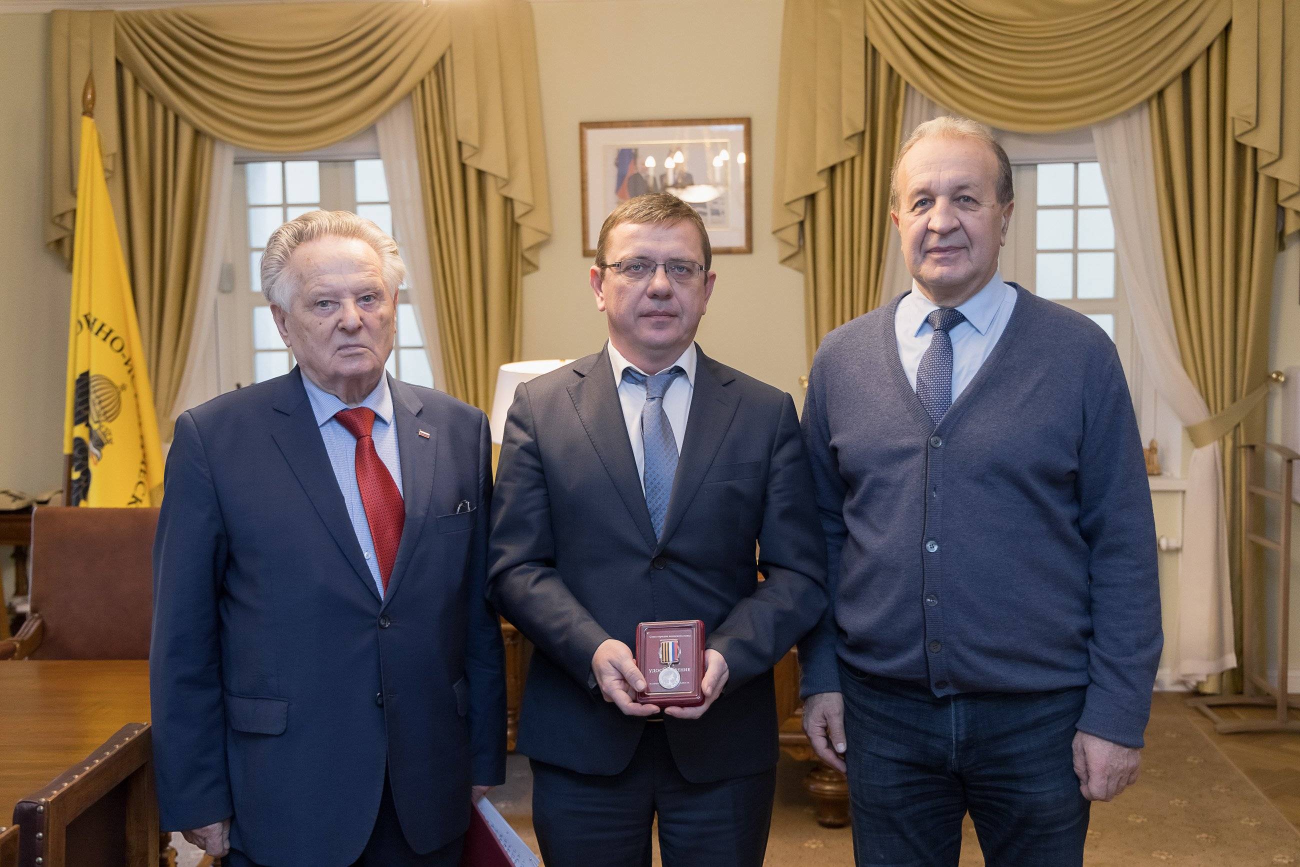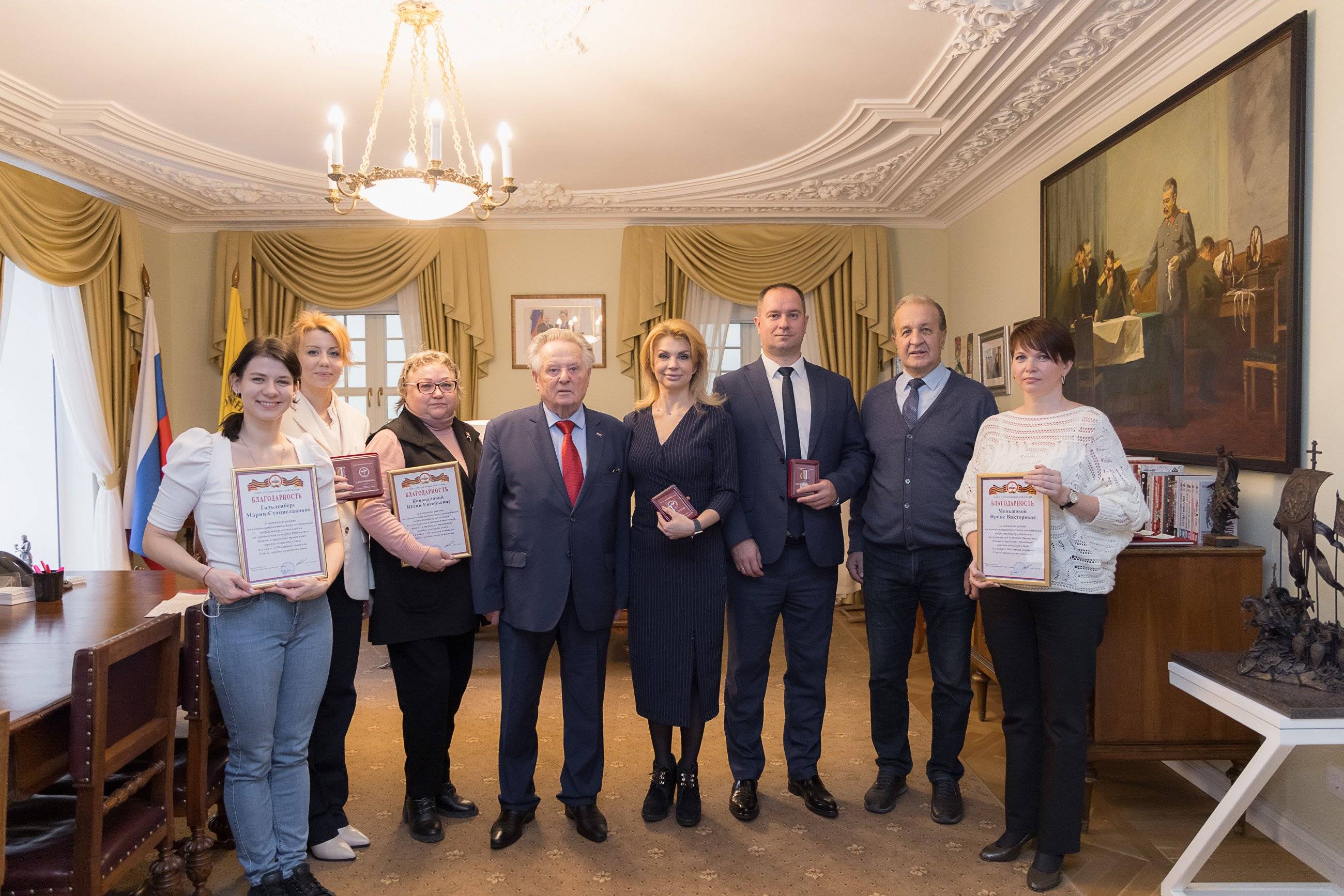 По поручению Председателя Союза Городов воинской славы Анатолия Зотова сотрудникам РВИО были вручены медали Союза Городов воинской славы «За активную патриотическую деятельность» и благодарности.