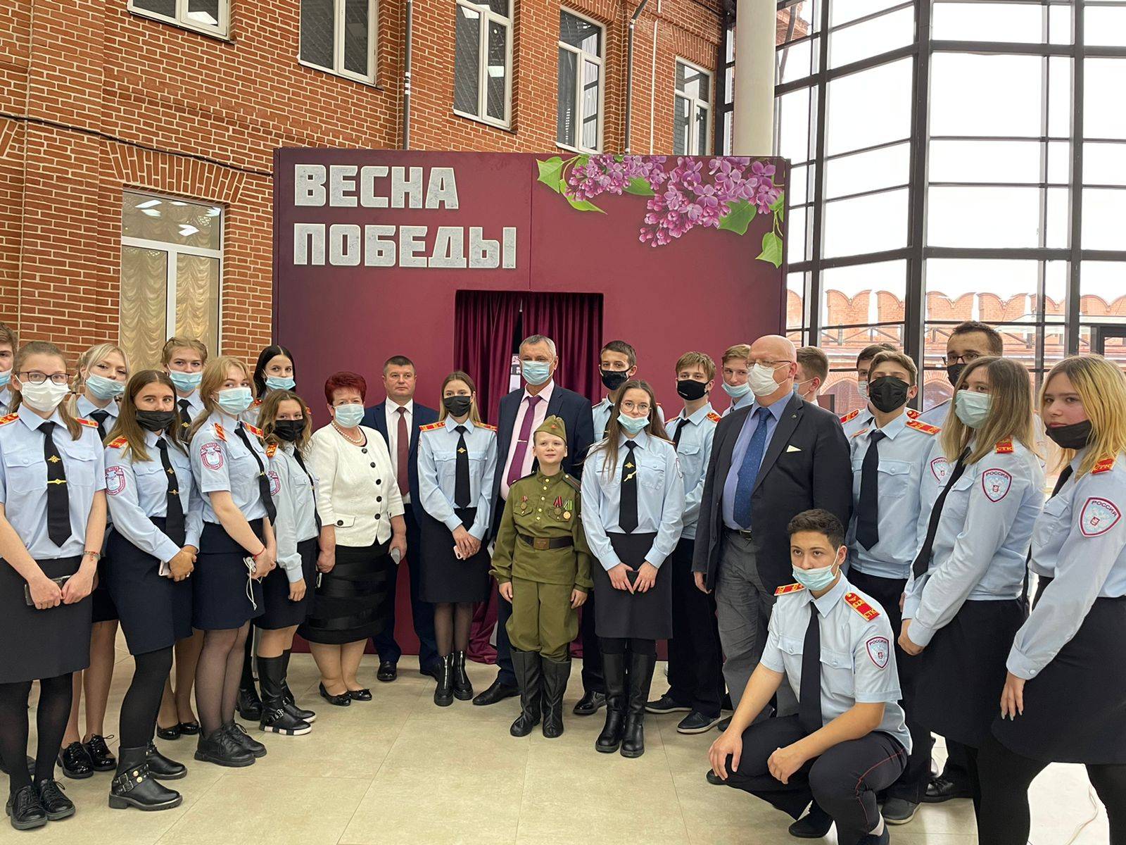 В атриуме музейно-выставочного комплекса Тульского кремля продолжает работу мультимедийная интерактивная выставка «Война. Герои и подвиги». Для кадет авторскую экскурсию по выставке провел Советник Председателя Российского военно-исторического общества Андрей Назаров.