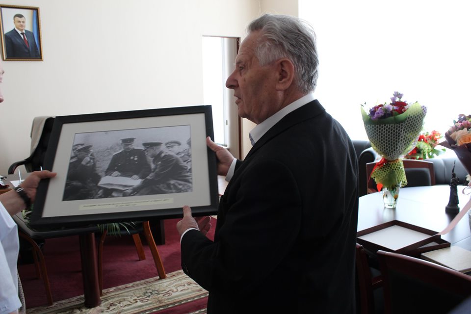 Нагрудный знак и удостоверение ему вручил Советник Председателя РВИО Ростислав Мединский. Он также передал юбиляру уникальные фотографии, икону, книги и альбомы.