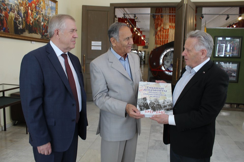 В ходе своего визита в Тамбов, Ростислав Мединский побывал в Музейно-выставочном центре области, где передал директору МВЦ, председателю Совета регионального отделения РВИО Игорю Николаеву уникальную книгу «Главные документы Великой Отечественной войны» для размещения ее среди экспонатов в зале Победы и пообещал принять участие в ноябре этого года в церемонии открытия обновленного зала космонавтики.