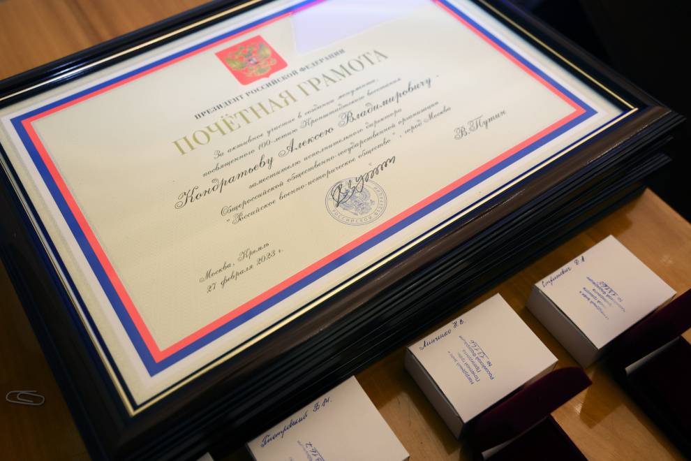 В церемонии награждения приняли участие: специальный представитель Президента РФ, постоянный член Совета безопасности РФ, Председатель Попечительского Совета Российского военно-исторического общества Сергей Иванов, помощник Президента РФ, Председатель Российского военно-исторического общества Владимир Мединский, губернатор Санкт-Петербурга Александр Беглов.