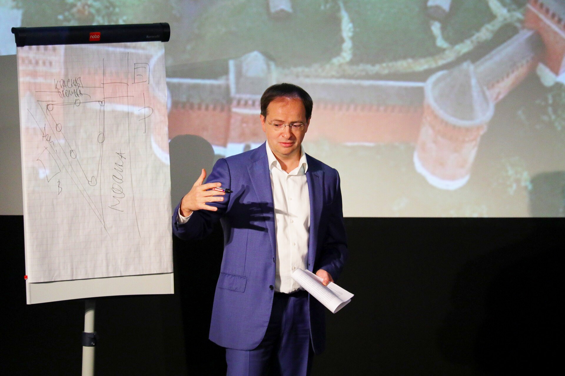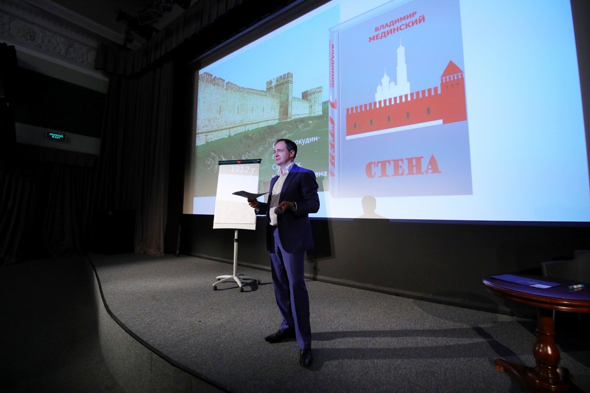 Сегодня в московском кинотеатре «Иллюзион» в рамках кинолектория «Среда истории» состоялась открытая лекция Министра культуры РФ, Председателя Российского военно-исторического общества Владимира Мединского, посвященная обороне Смоленска от польско-литовских войск в 1609-1611 годы.