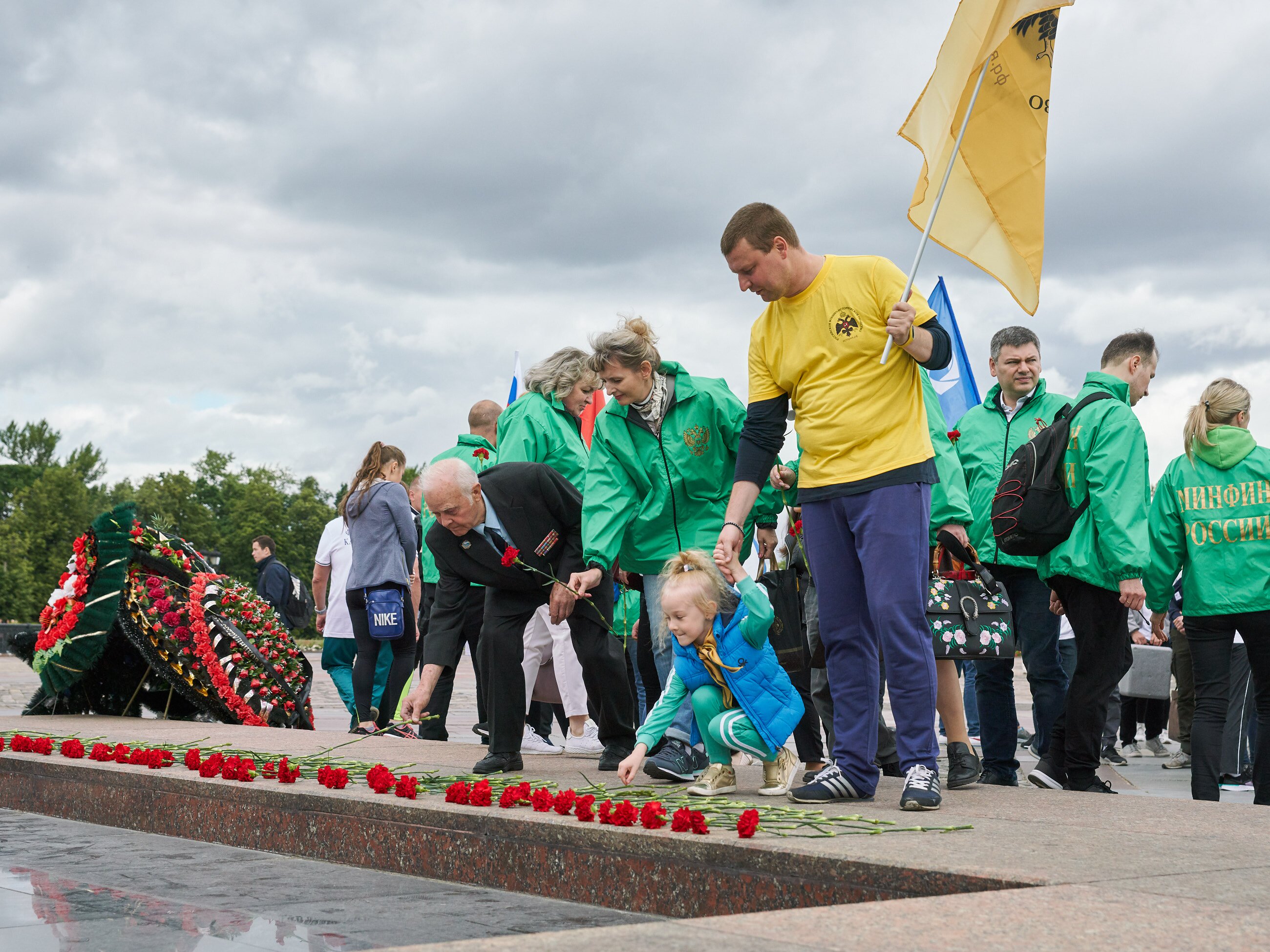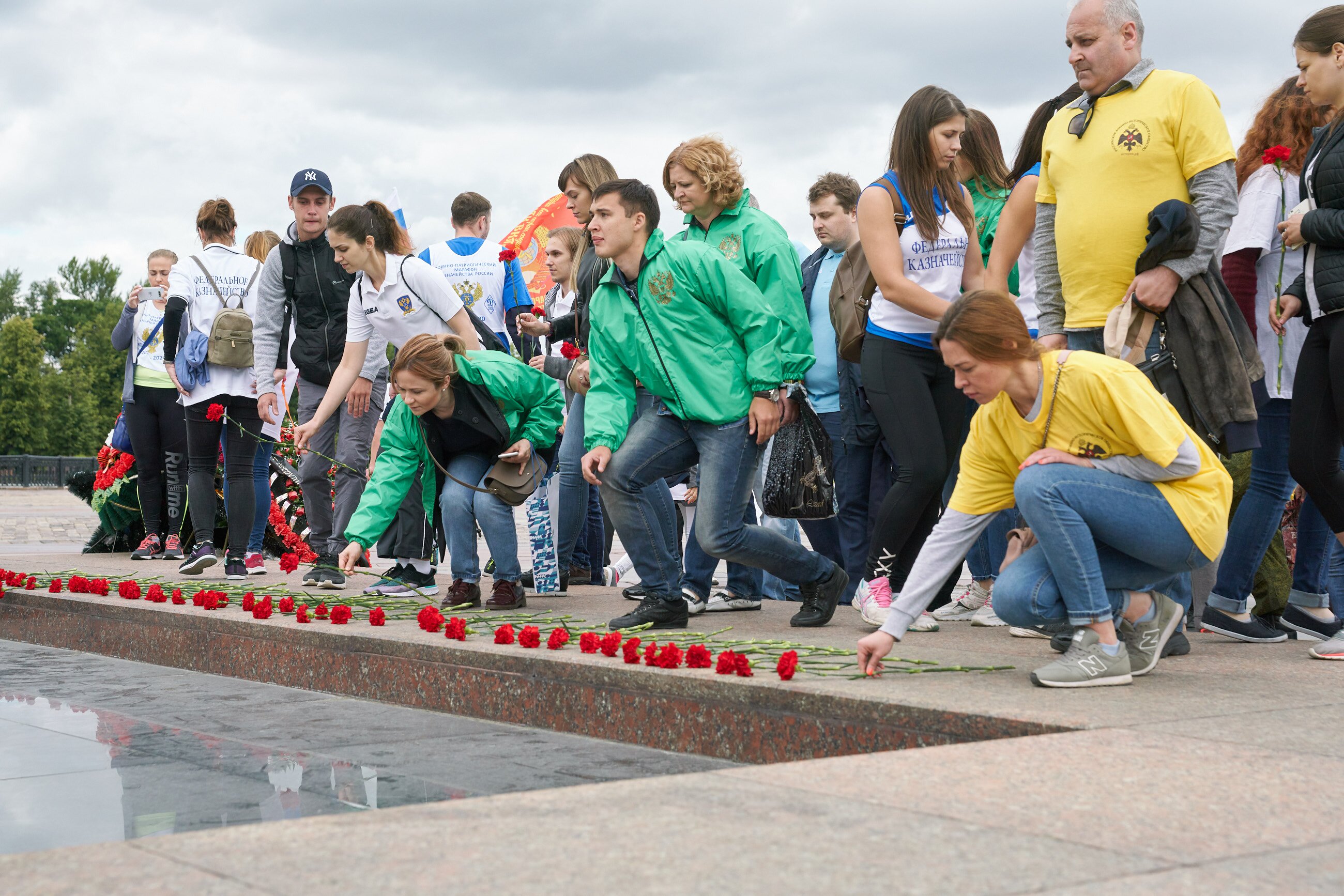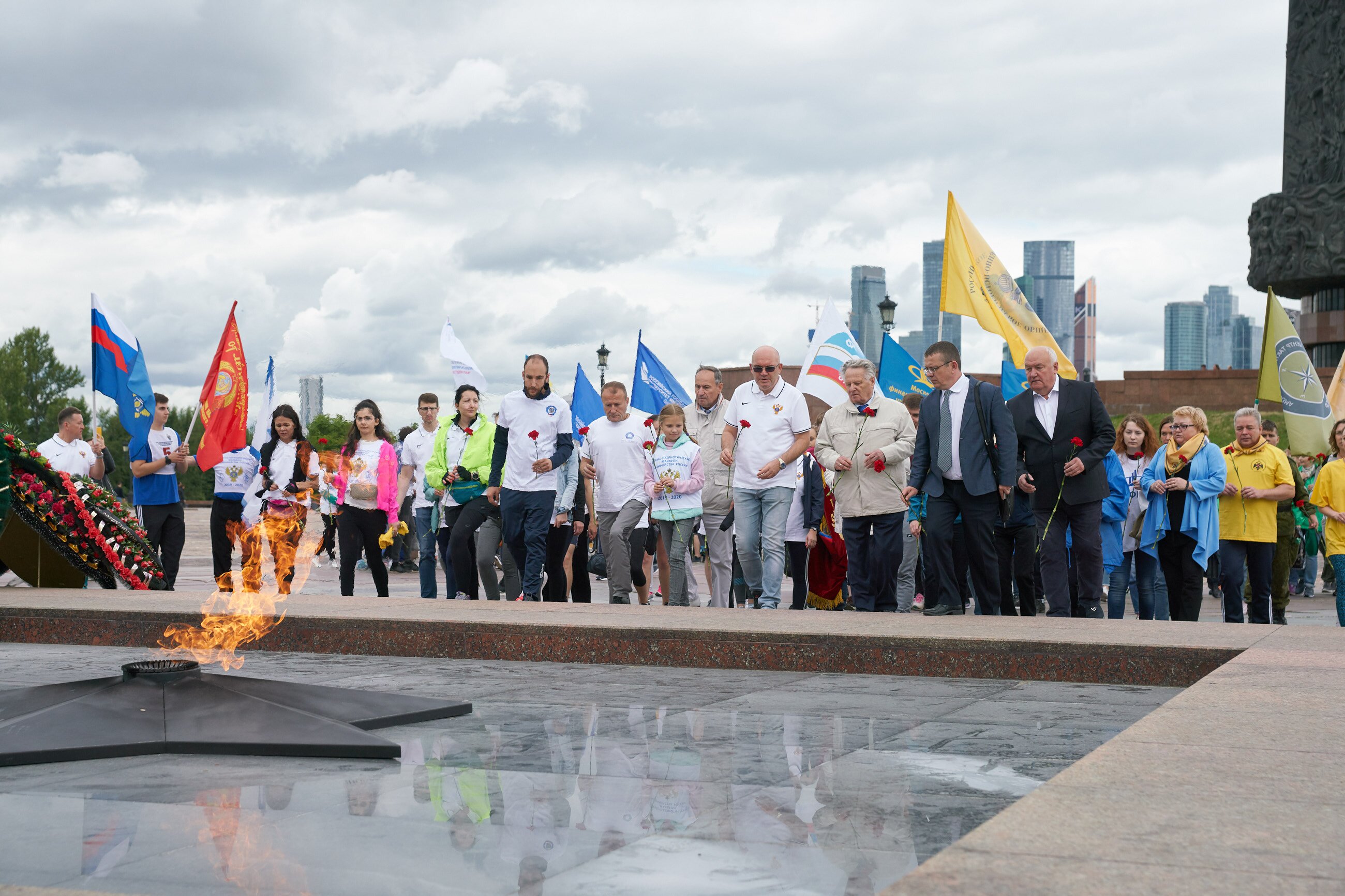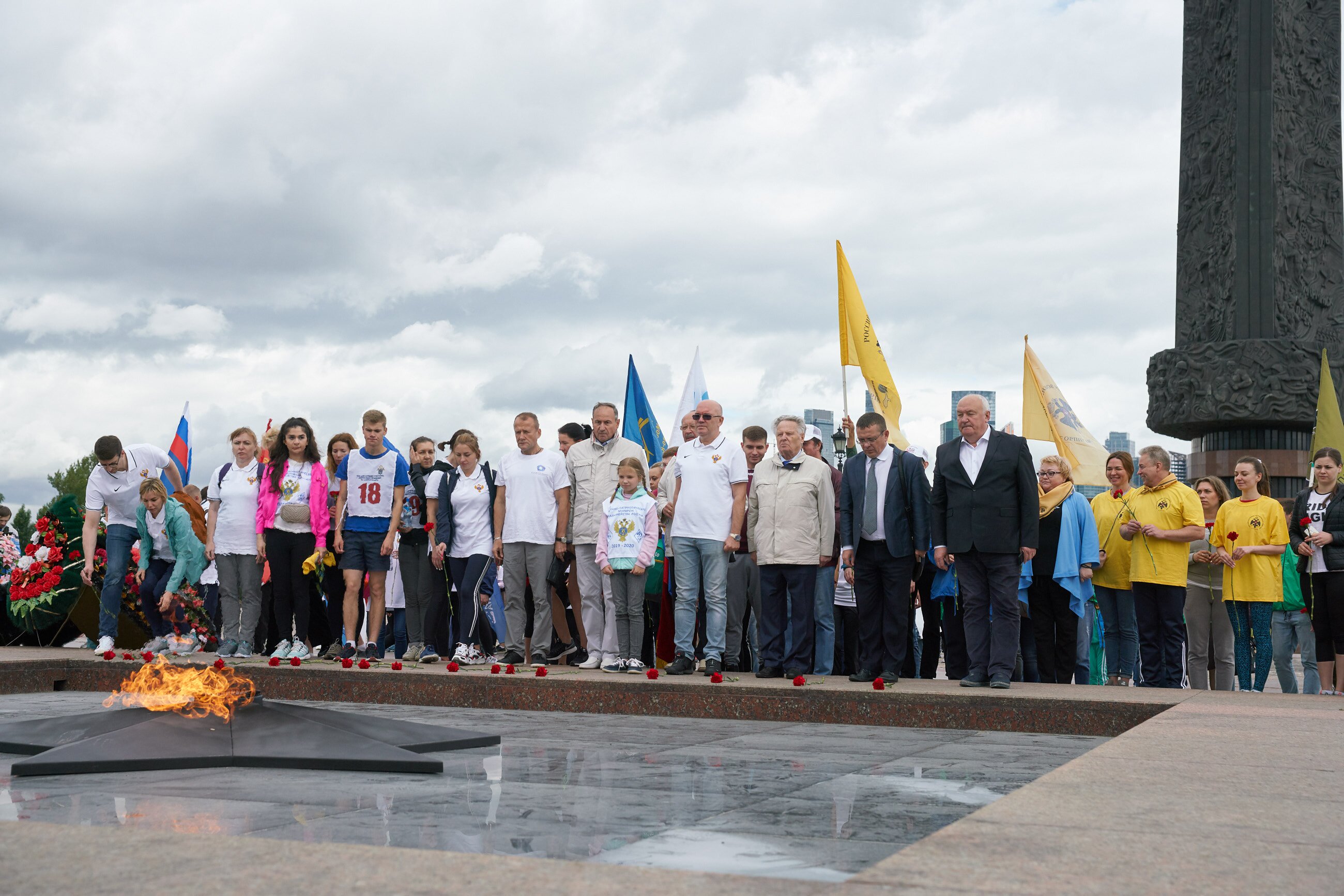 В первый день марафона в московском забеге участвовало более 300 человек, а в регионах страны - несколько тысяч добровольцев. Самому юному участнику акции в Москве всего 4 месяца. После завершения первого этапа забега, марафонцы возложили цветы к Вечному огню на Поклонной горе и почтили минутой молчания память Защитников Отечества, павших на фронтах Великой Отечественной войны.