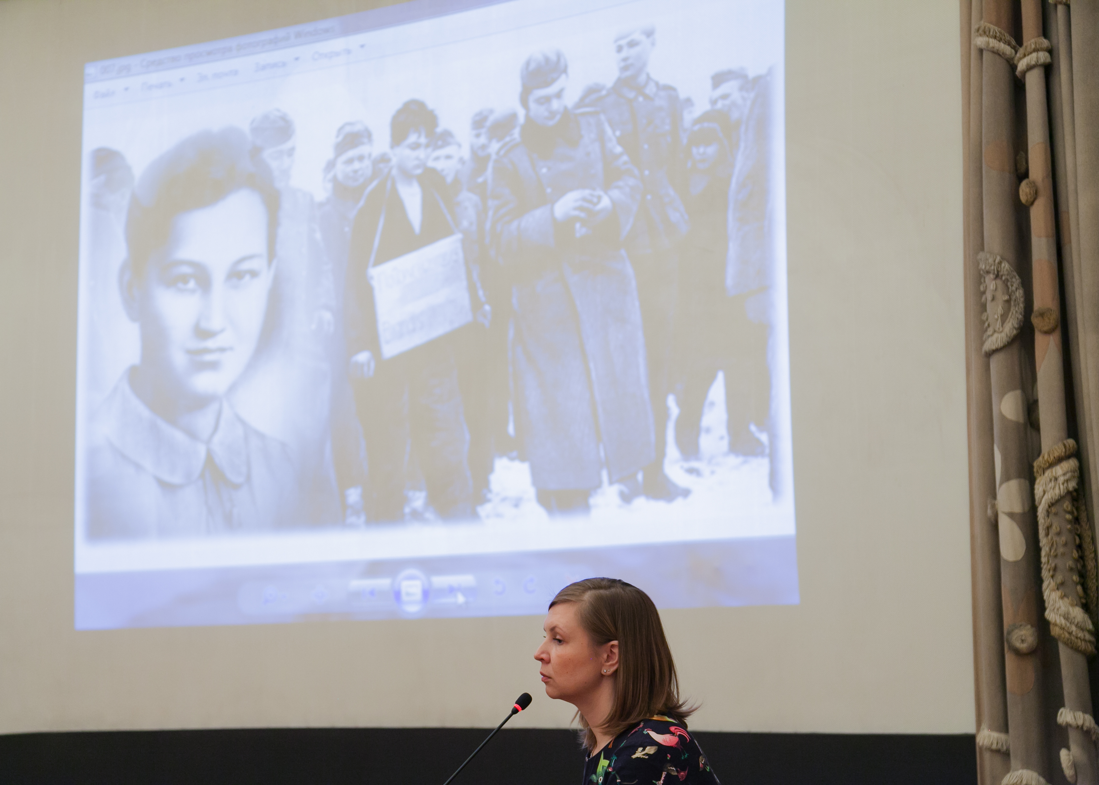 После церемонии официальной открытия заместитель начальника Научного отдела Виктория Петракова прочитала лекции, посвященные участию советских женщин в Великой Отечественной войне 1941-1945 годов, в рамках открытия выставки и проекта «Школа гражданской активности».