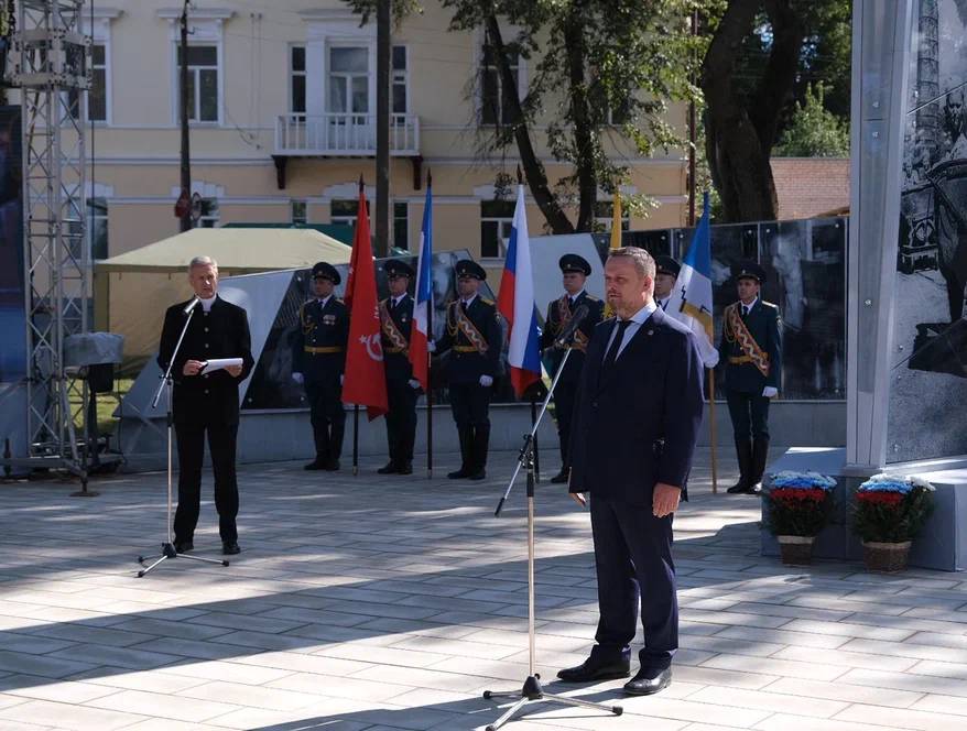 Владислав Кононов зачитал приветствие помощника Президента РФ, председателя РВИО Владимира Мединского, в котором говорится, что открытие стелы – повод для гордости всех жителей Новгородской области.