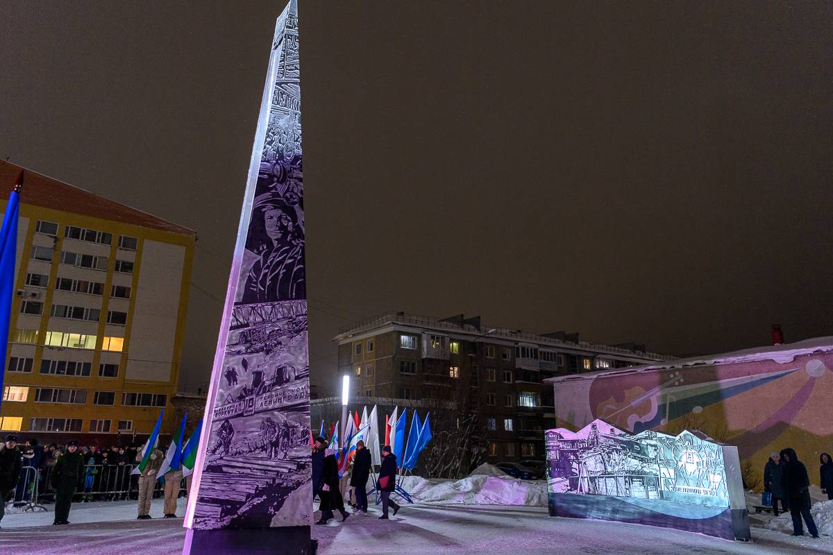 Стела в Воркуте стала 27-й по счету. В основе сюжета – архивные фотографии героев. К примеру, фото мастера угля Ванды Барсуковой, которая инициировала движение «Женщины Воркуты - спускайтесь в забой». Еще один герой - машинист Петр Дьяченко - вел первый состав сверхпланового угля после прорыва блокады Ленинграда в 1944 году.