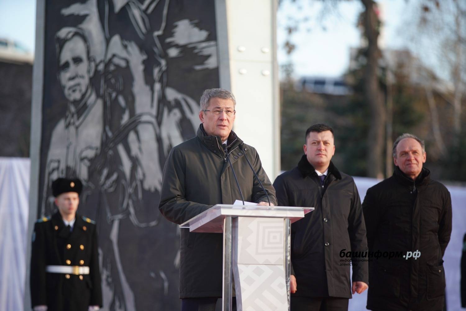 - Четыре долгих года Великой Отечественной войны труженики вели свой бой. Без права на отступление, отгул или выходной. В историю навсегда вписан самоотверженный подвиг рабочих уфимских предприятий, моторостроительного производственного объединения, хлопчатобумажного комбината и других предприятий, тружеников сельского хозяйства БАССР. Сегодня наш долг не только хранить память о событиях тех лет, но и защищать историческую правду о подвиге предков ради будущего нашей великой Родины — России. Поздравляю вас с открытием стелы и желаю всего самого доброго! — отметил он.