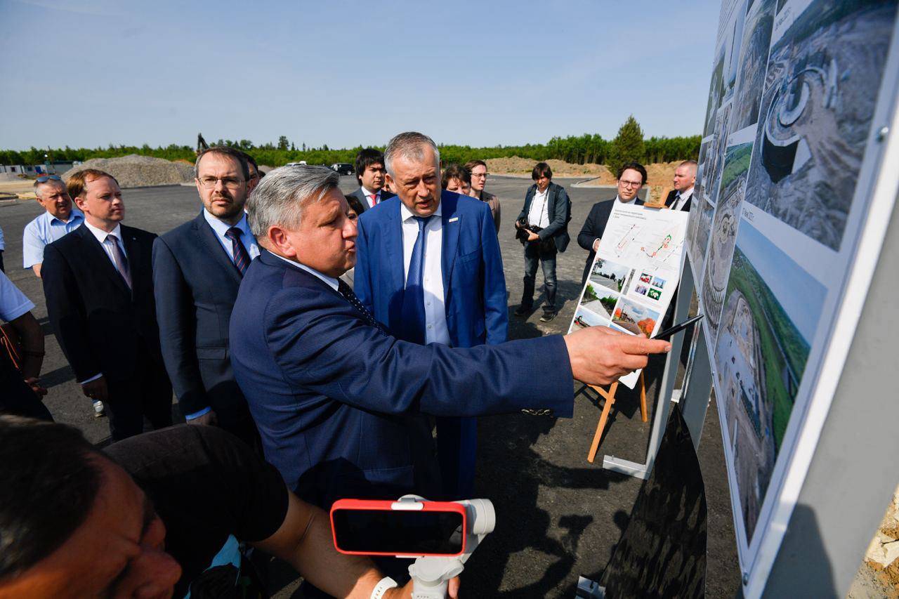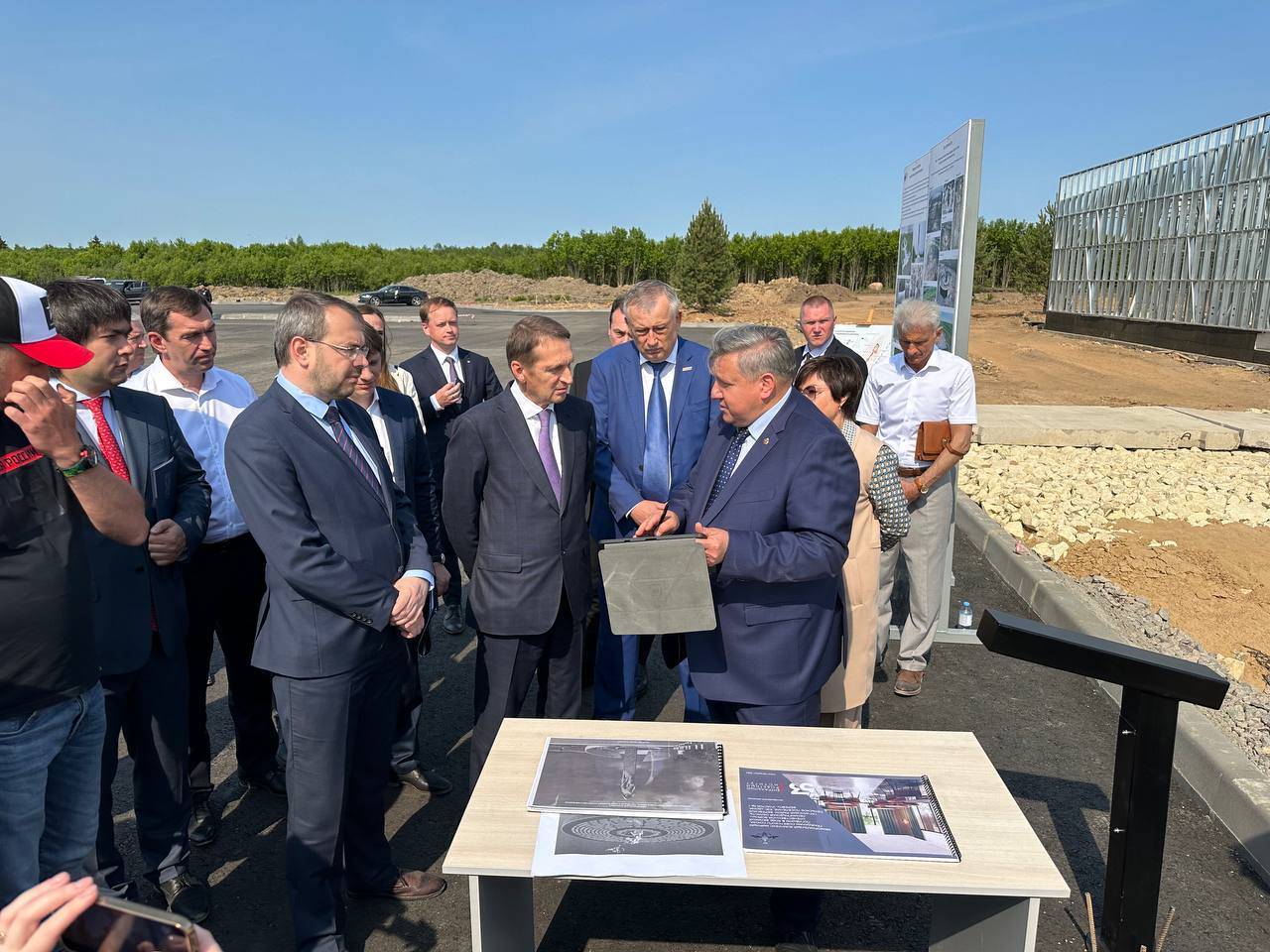 Строительную площадку мемориала сегодня утром посетили Председатель Российского исторического общества Сергей Нарышкин, заместитель Председателя Российского военно-исторического общества Николай Овсиенко и Губернатор Ленинградской области Александр Дрозденко.