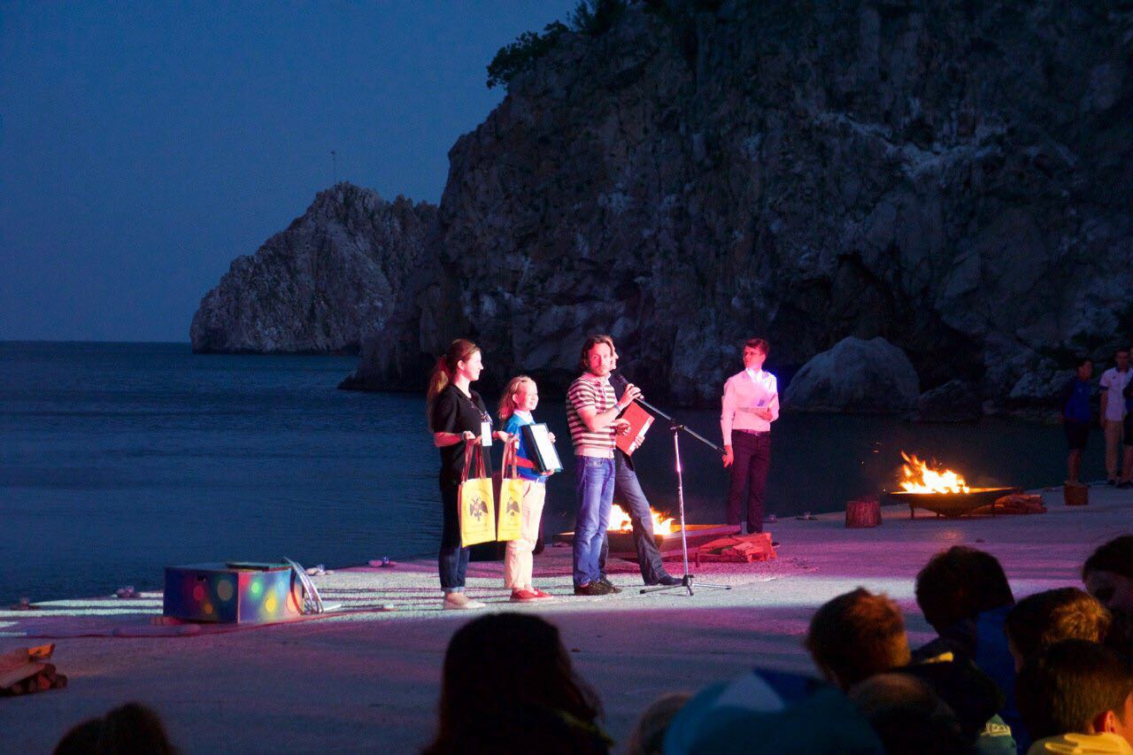 Специально для школьников сотрудники Международного детского центра "Артек" и РВИО зажгли на пляже традиционные костры и организовали вечернюю культурную программу. Эстрадные номера участников смены продемонстрировали группа шоу-балета «Тодес» Аллы Духовой, солист Образцово-показательного оркестра внутренних войск МВД России Евгений Кунгуров и Детский театр песни «Домисолька».