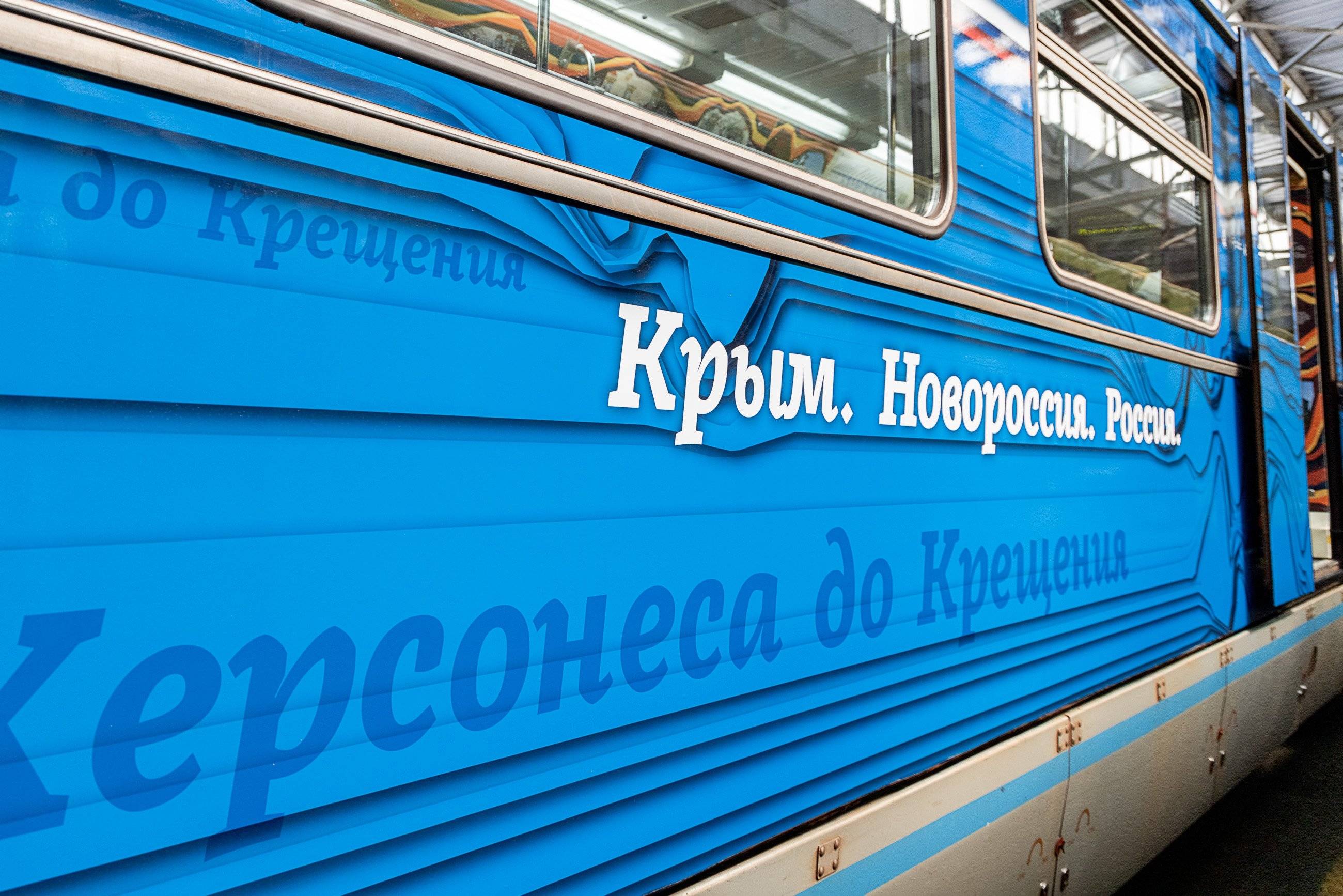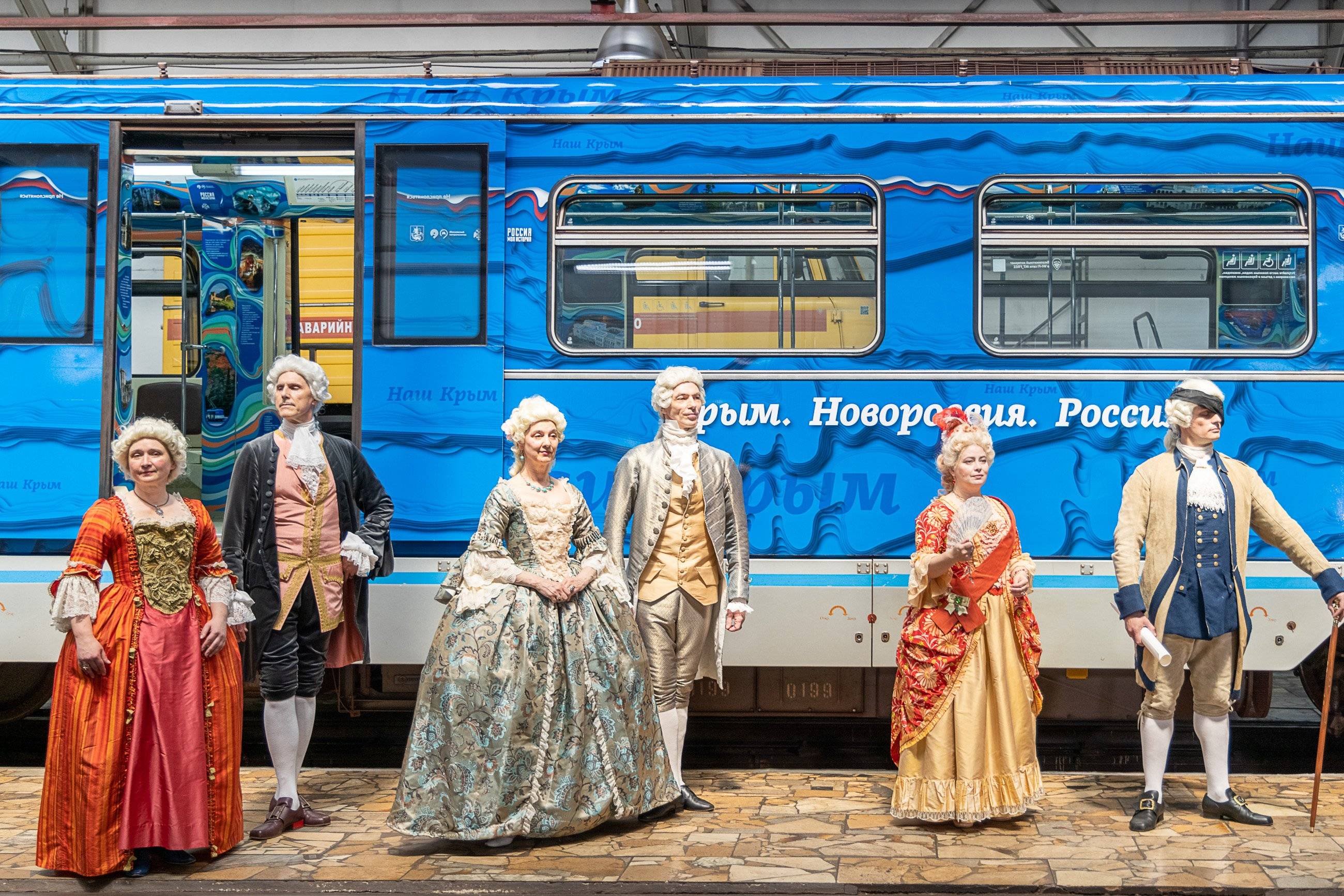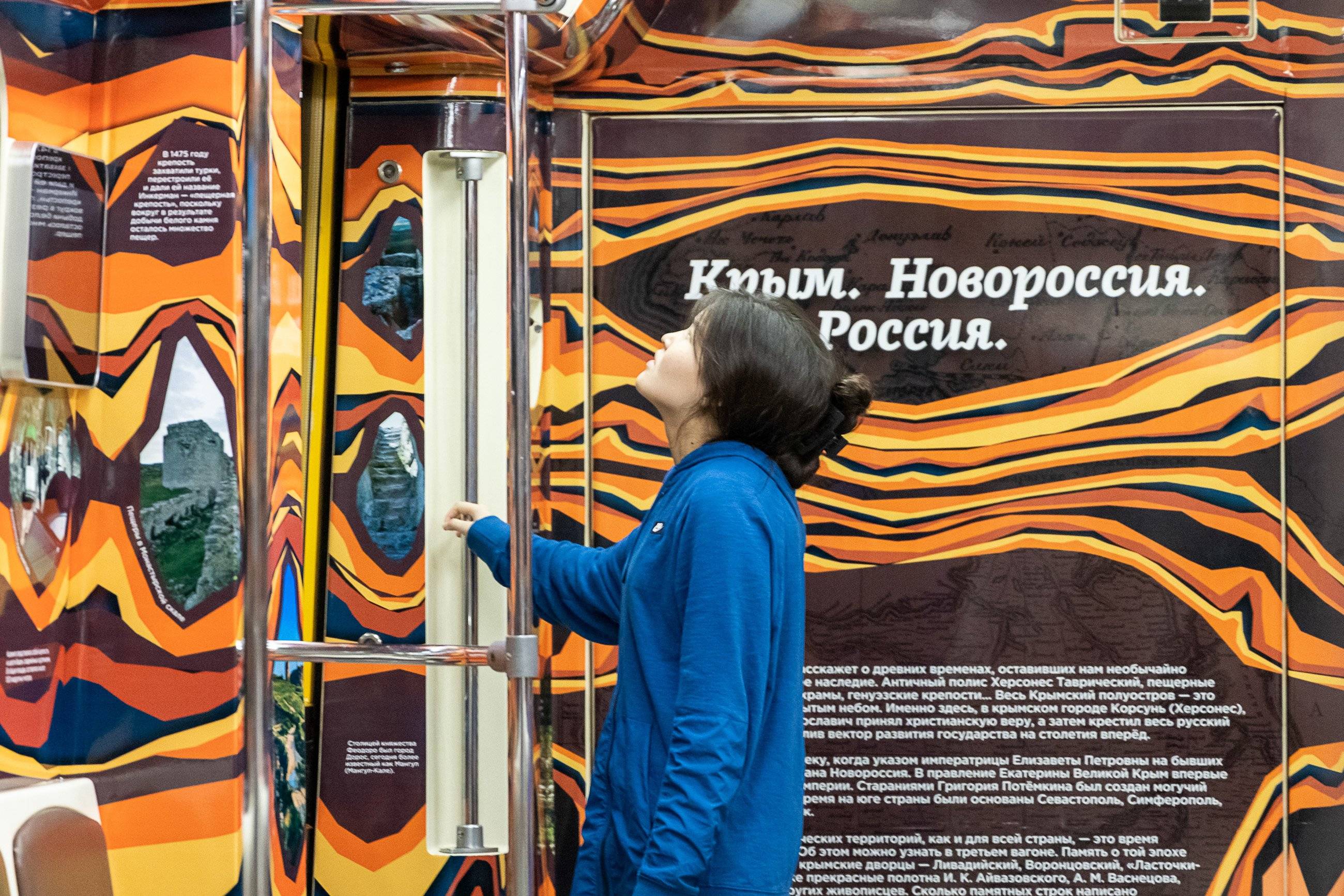 На Арбатско-Покровской линии Московского метрополитена начал курсировать тематический поезд «Крым. Новороссия. Россия», посвященный 240-летию подписания императрицей Екатериной II манифеста «О принятии полуострова Крымского, острова Тамана и всей Кубанской стороны под Российскую Державу».
