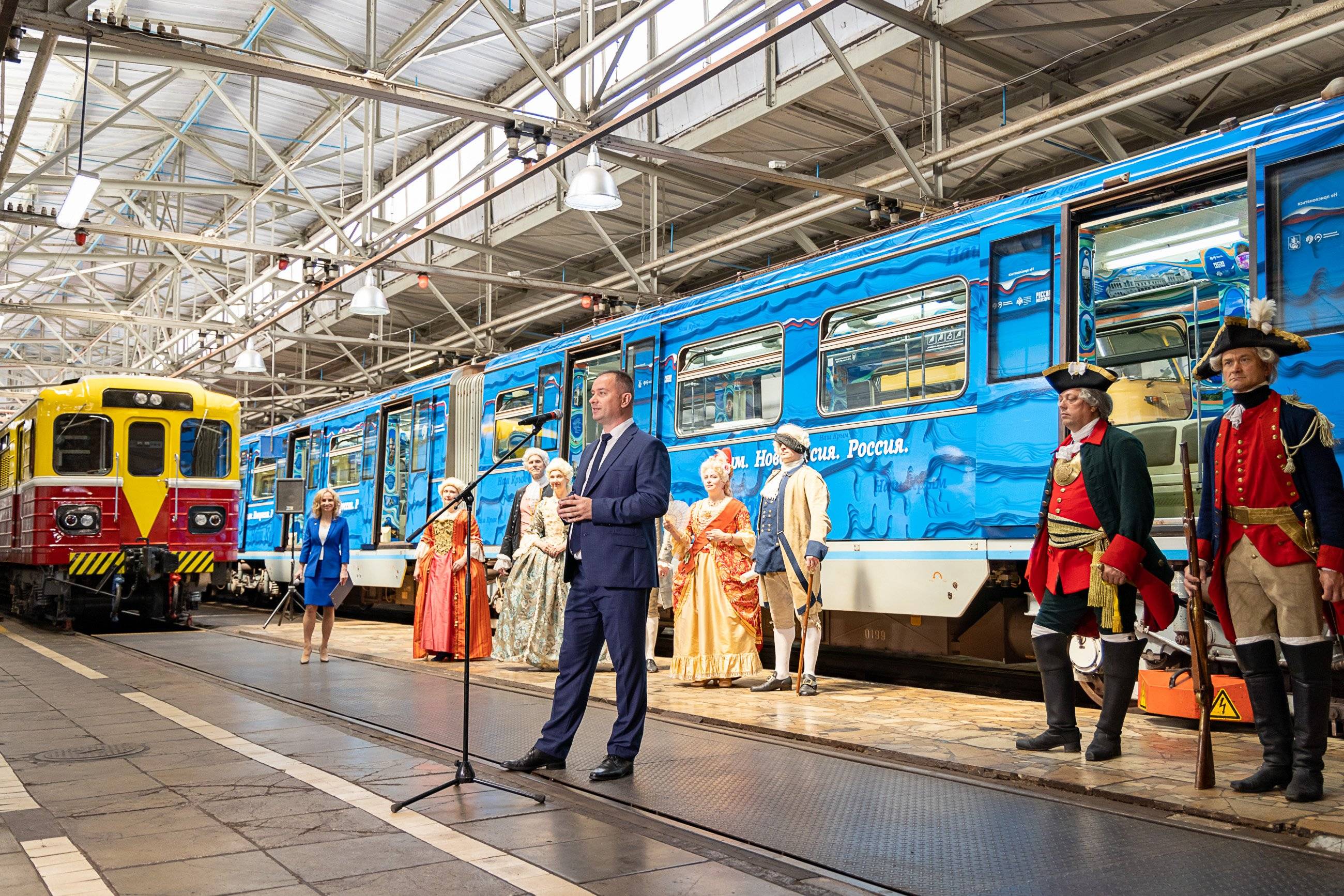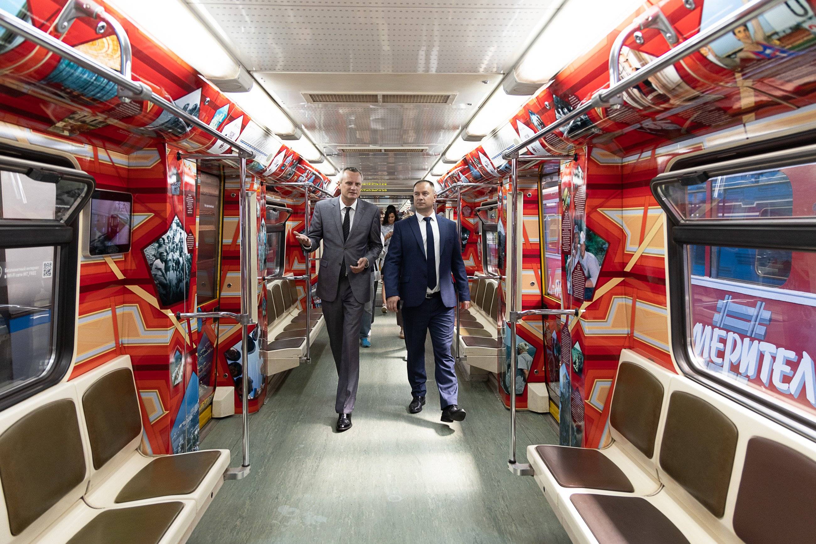 - За 8 лет это уже 16-й поезд, посвященный важным историческим событиям. И каждый год мы получаем тысячи отзывов москвичей, которые рассказывают, насколько это интересно и удобно - узнавать историю просто по пути на работу или по пути домой. И есть примеры, когда люди пропускают свои станции, потому что зачитываются историческими событиями. Этот поезд, второй, оформленный РВИО совместно с Фондом Гуманитарных Проектов и историческим парком «Россия-моя история». Много историков несколько месяцев кропотливо работали над тем, чтобы поезд получился таким, как мы его видим, - рассказал Исполнительный директор Российского военно-исторического общества Виталий Мартынюк.