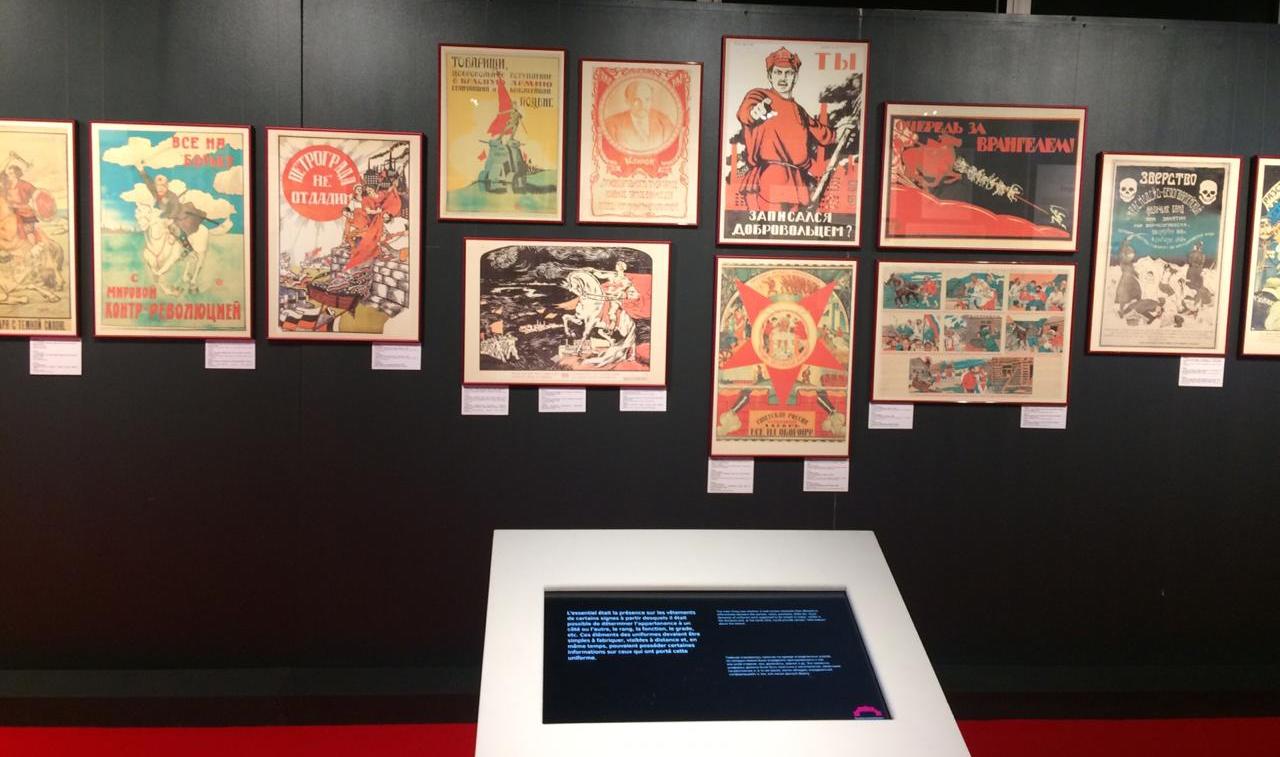 Большое внимание уделено агитационным материалам, среди которых особенно выделяется уникальная коллекция «красных» плакатов известнейших художников своего времени: Э. Лисицкого, М. Черемных, Д. Моора, Б. Зворыкина, А. Кучеровой, К. Спасского, а также агитационных листов Белого движения Юга России, выпущенных в Новочеркасске, Ростове-на-Дону и Одессе органами пропаганды: ОСВАГом (отдел пропаганды при правительстве Вооруженных сил Юга России) и Донотосом (Донской отдел осведомления). Кроме того, на выставке можно будет увидеть копии живописных работ выдающихся художников — М. Грекова, И. Владимирова, Н. Никонова, а также знамен воюющих сторон.