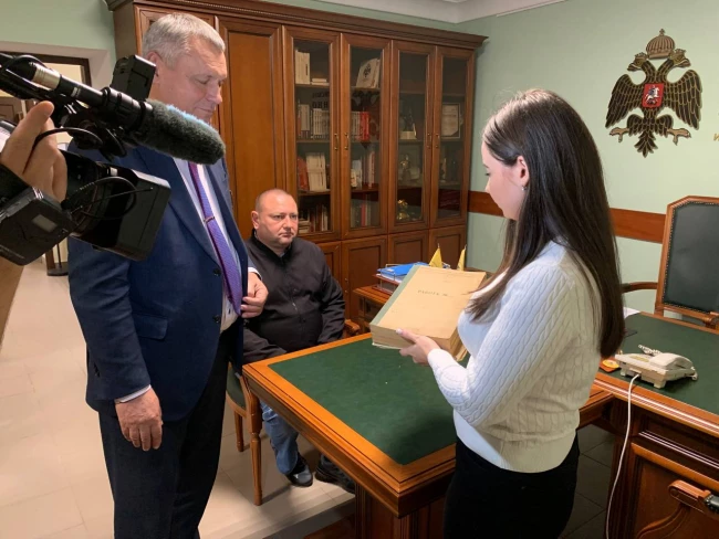 Региональное отделение Российского военно-исторического общества в Тульской области передало делегации из Бердянского краеведческого Музея уникальные документы советского военного деятеля, генерал-лейтенанта артиллерии Игнатия Степановича Прочко.