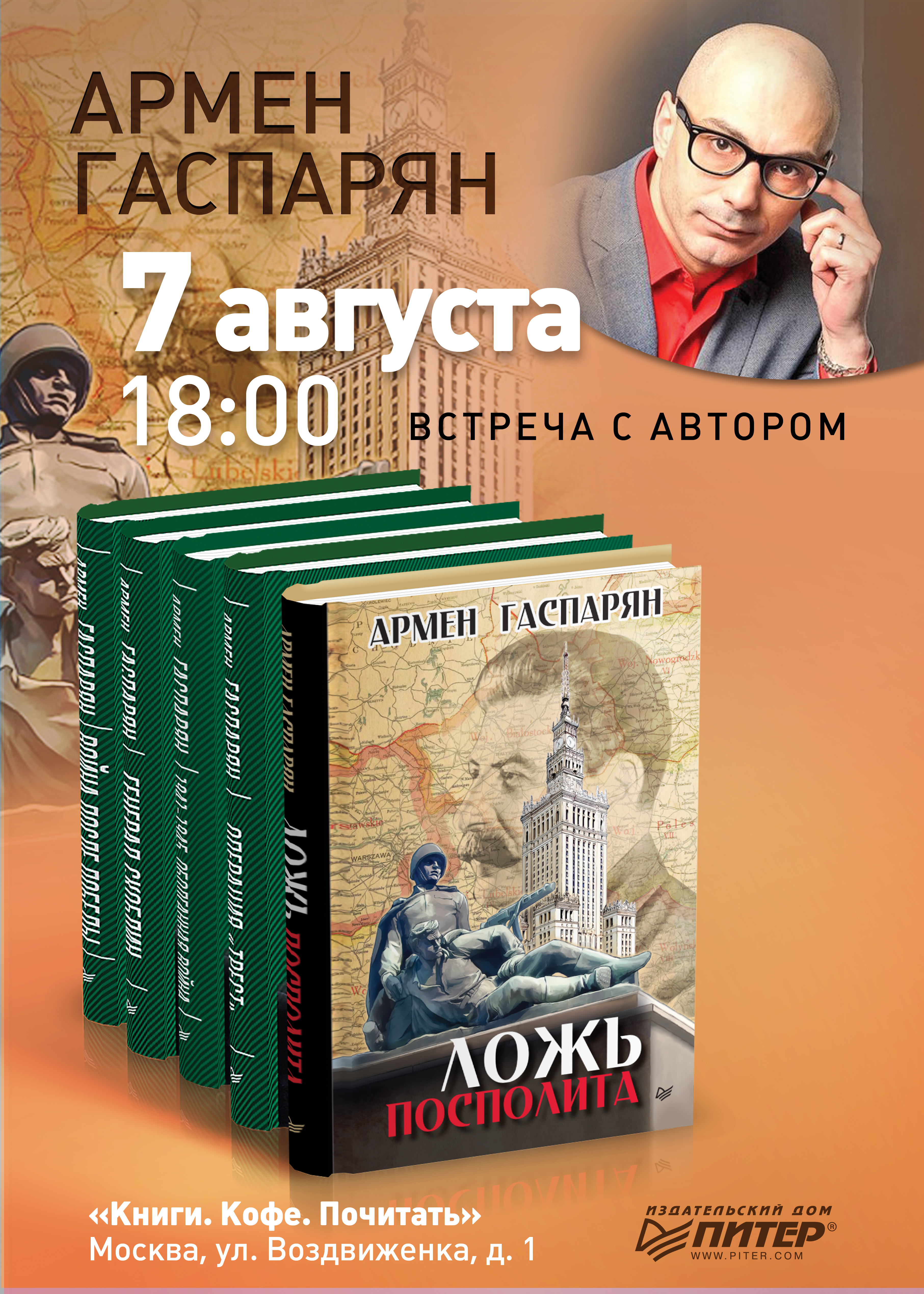 В книжном клубе РВИО «Книги. Кофе. Почитать» (Москва, Воздвиженка, 1) продолжается цикл встреч с интересными людьми. 7 августа в 18.00 состоится творческая встреча с Арменом Гаспаряном.