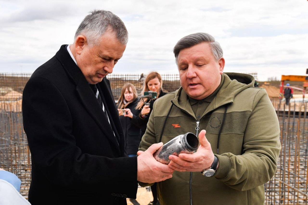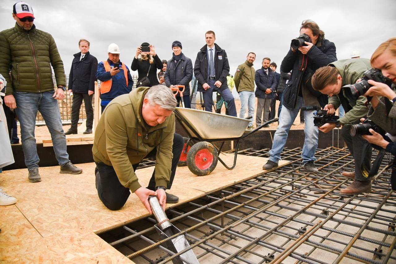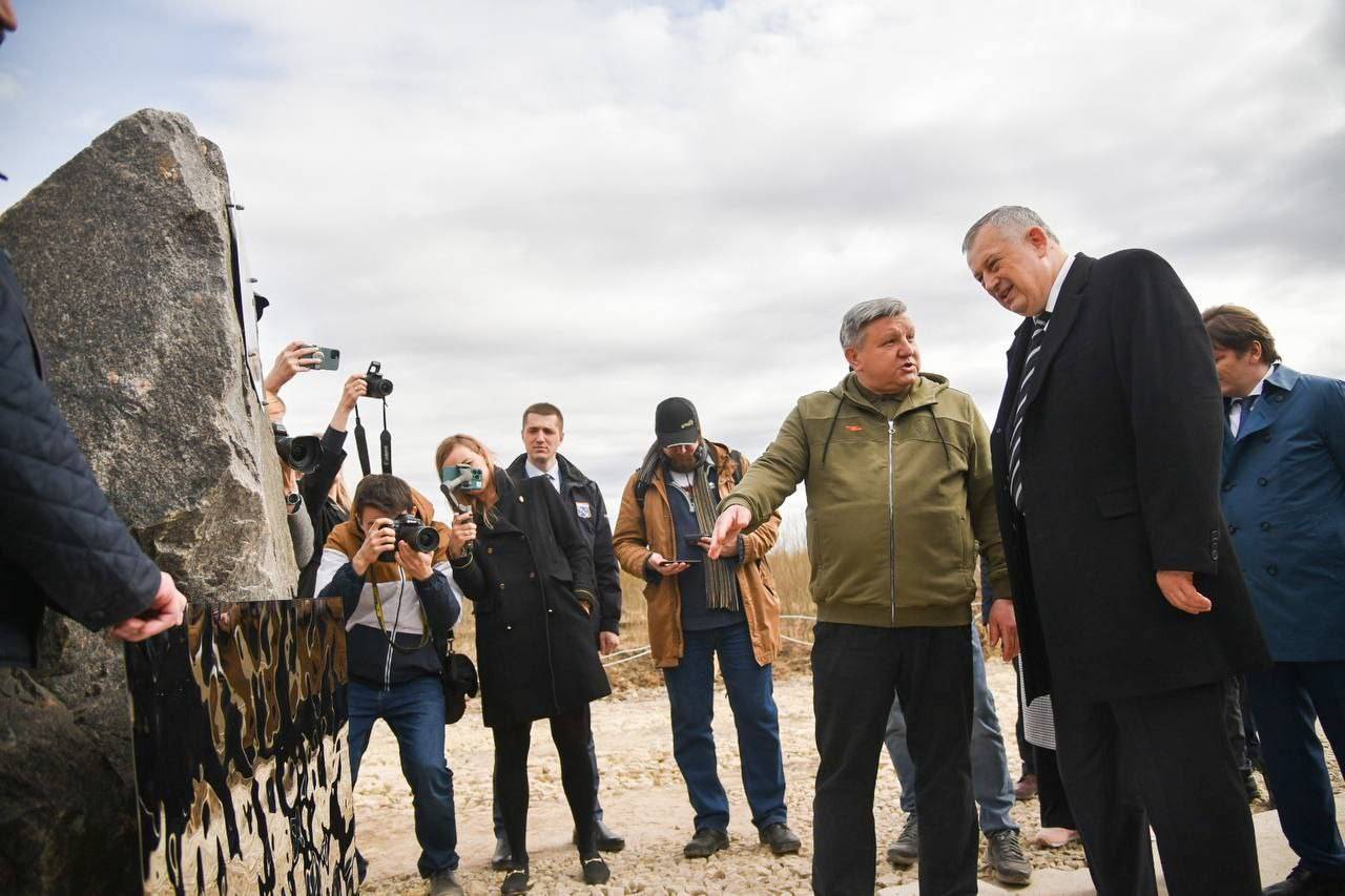 Капсулу с землей, которую собрали с Мест Памяти Донбасса и Ростова-на-Дону, поместили в основание мемориала заместитель Председателя Российского военно-исторического общества Николай Овсиенко и губернатор Ленинградской области Александр Дрозденко.
