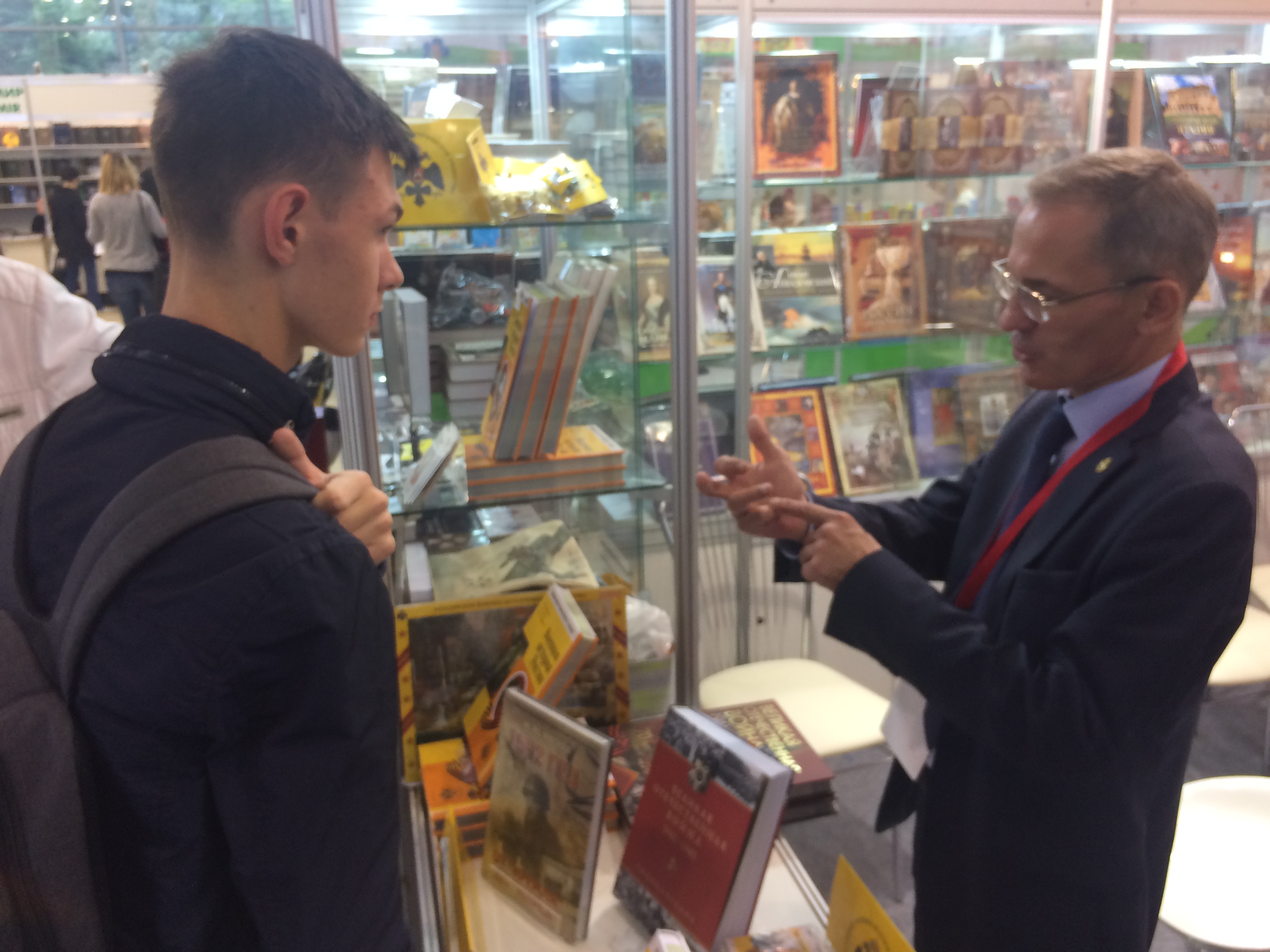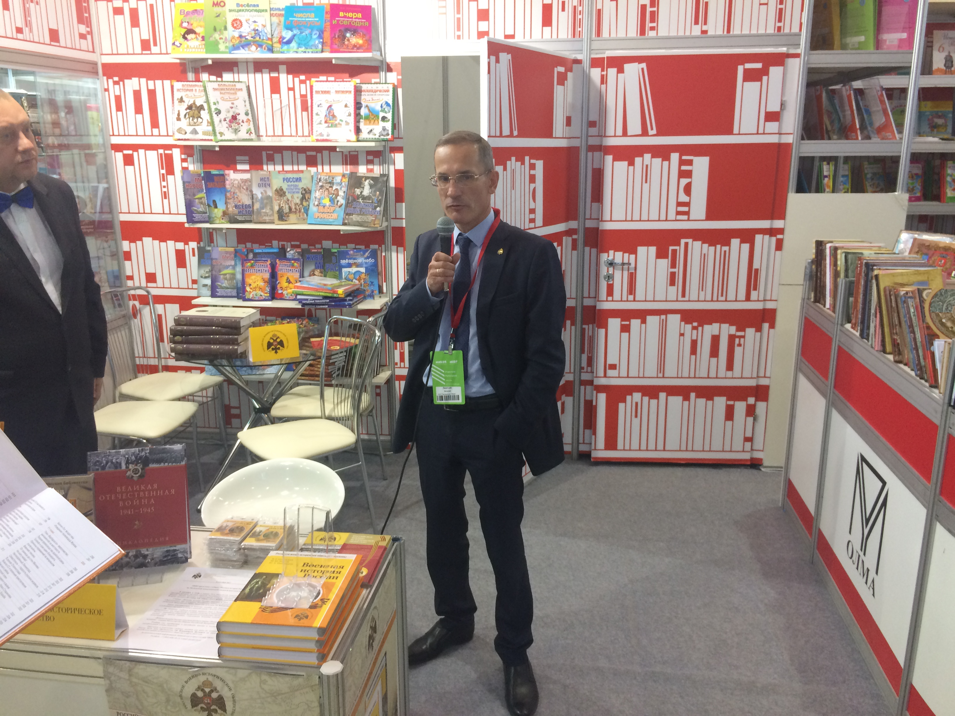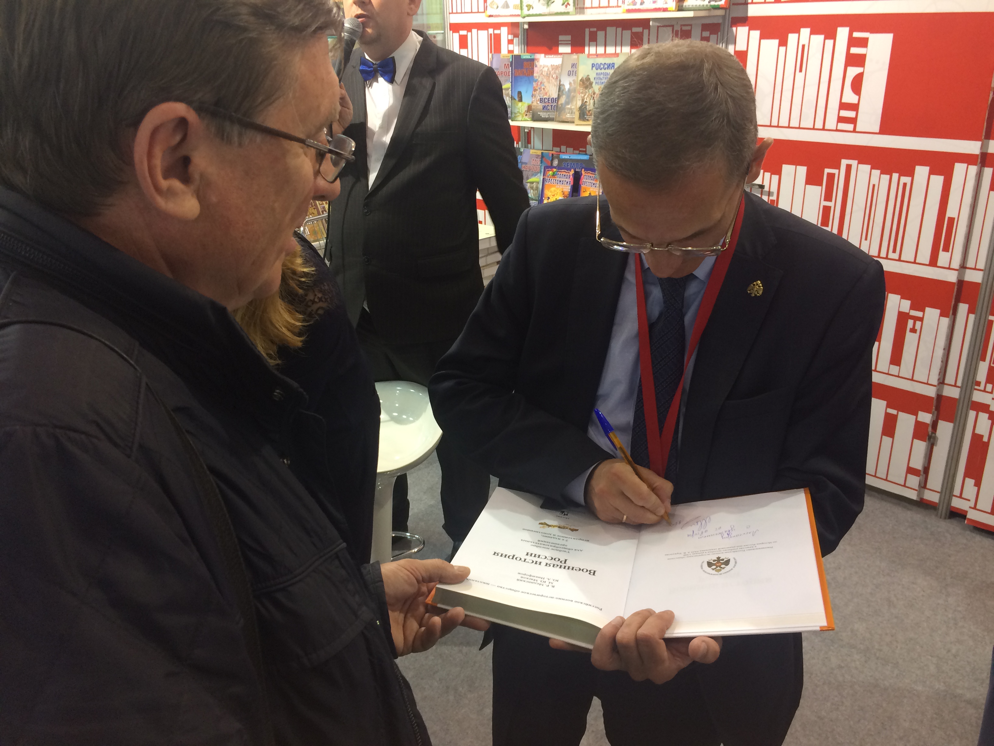 8 сентября в рамках 30-й Московской международной книжной выставки-ярмарки научный директор Российского военно-исторического общества Михаил Мягков выступил с презентацией 2-го дополненного издания учебника «Военная история России».