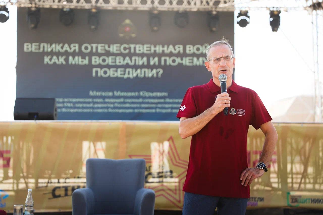 В военно-историческом лагере «Страна Героев» для 850 участников всероссийской смены состоялась открытая лекция российского историка, научного директора Российского военно-исторического общества, специалиста по истории Великой Отечественной войны, профессора Михаила Мягкова.