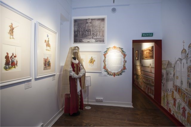 На выставке «Расшиты шелком, жемчугом и златом» представлены реконструкции костюмов современниц Московской Руси (XVII век). Льняные сорочки и шелковые рубахи с длинными рукавами, горничные и уличные одежды сшиты вручную с соблюдением старинных приемов из русских и заморских тканей мастерами студии традиционного костюма «Русские начала». Особое место в экспозиции занимают головные уборы, созданные мастерицами, возродившими уникальную технику вышивки жемчугом «сажение по бели», известную на Руси с XII века.