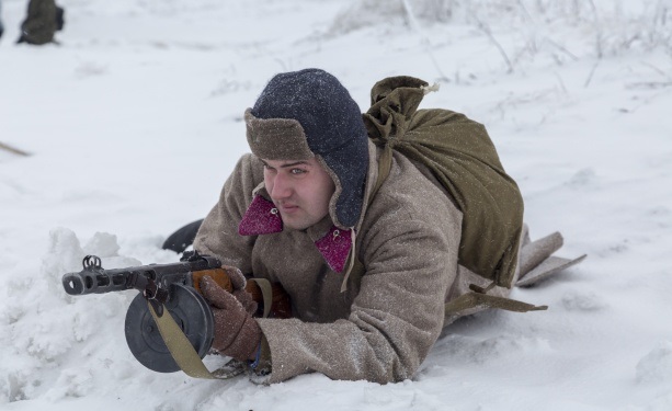 Участники реконструкции убедились, что многие элементы экипировки рядового бойца Красной Армии являлись удобными и хорошо адаптированными к суровым погодным условиям.