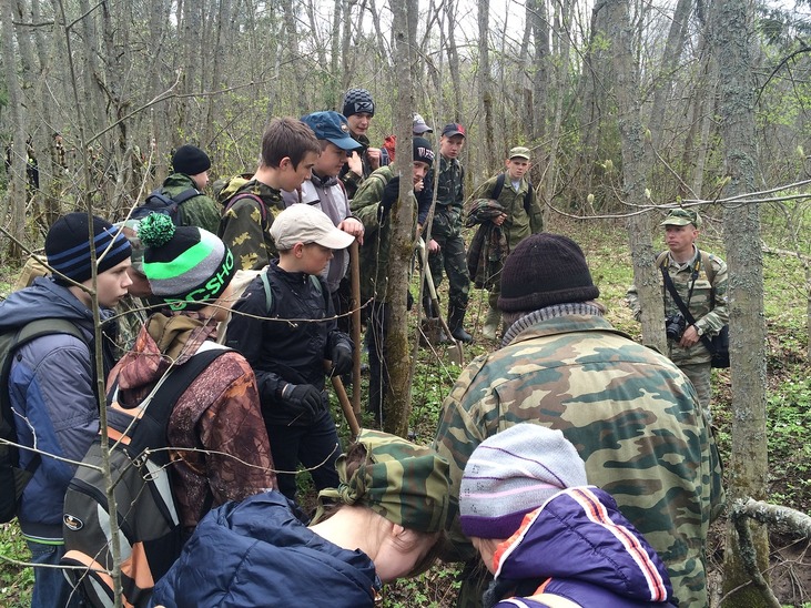 Урок для 50 учеников проходил в лагере, разбитом поисковиками из московской областной общественной организации "Военно-патриотический центр "Застава". Александр Морзунов (командир поискового отряда "Находка" экспедиции "Долина") рассказал ребятам об ожесточенных боях,которые проходили здесь в Великую Отечественную войну, о том, как важно сохранить память о бойцах и командирах, отдавших свои жизни на полях сражений. Руководитель Департамента поисковой и реконструкторской работы РВИО Сергей Мачинский рассказал подросткам об истории создания Императорского общества, о целях, задачах и направлениях работы современной организации. Выступающие обратили внимание ребят на моральные аспекты работы поисковиков.