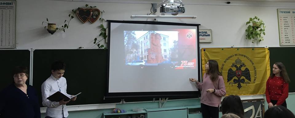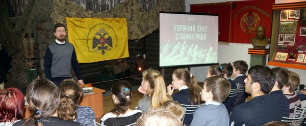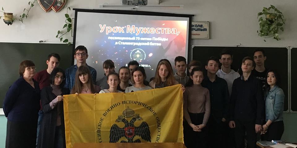 Для школьников г. Ярославля в рамках «Урока мужества» был проведен цикл встреч «Горячий снег Сталинграда», посвященный 75-летию Сталинградской битвы. Мероприятия в Музее Боевой Славы прошли благодаря сотрудничеству Ярославского регионального отделения РВИО и Государственного историко-архитектурного музея-заповедника. Перед школьниками выступил член ярославского отделения РВИО, кандидат исторических наук Михаил Кербиков.
