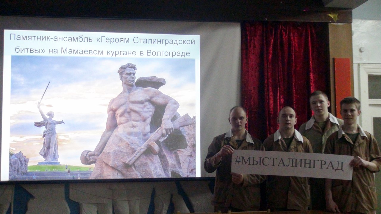 В Костроме в молодёжном комплексе «Пале» состоялся «Урок мужества» прошел для школьников, а также студентов Костромского машиностроительного техникума. Участник городского поискового отряда Ольга Напалкова рассказала участникам о Сталинградской битве, а также о костромичах – участниках Сталинградской битвы.