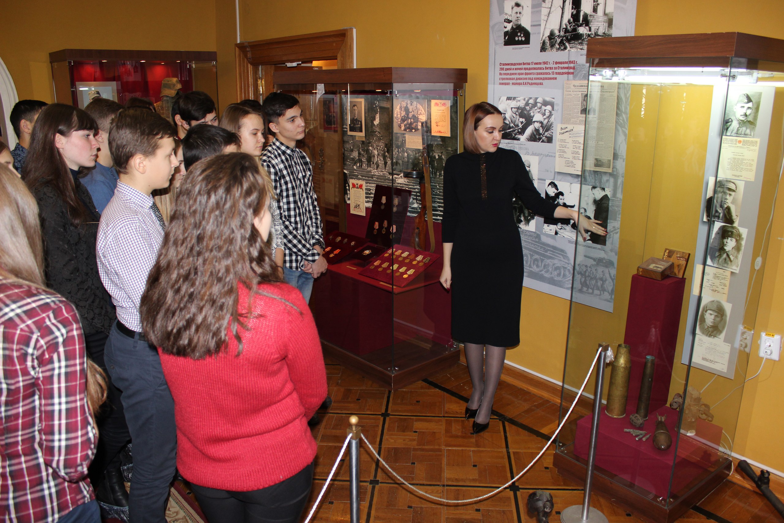 В Оренбургском губернаторском музее состоялся «Урок мужества» для учащихся школ поселков Первомайский и Экспериментальный (Оренбургского района). Урок начался с возложения цветов к Вечному огню в выставочном комплексе «Салют, Победа!». В ходе лекции дети познакомились с главными событиями Сталинградской битвы, посмотрели фильм о дважды Герое Советского Союза генерале Александре Родимцеве. Особое впечатление на школьников произвело выступление сына полка, участника Сталинградской битвы Николая Осовитного. Далее ребята посмотрели экспозицию обновленной выставки «Сталинград в огне. Герои Оренбуржья», где представлены именной пистолет «Вальтер» А.И. Родимцева, трехлинейная винтовка Мосина, станковый пулемет «Максим», а также раритетные предметы периода Великой Отечественной войны из собрания музея.