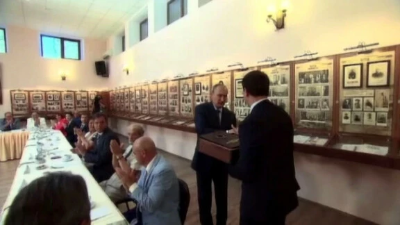 Отреставрированный РВИО Андреевский флаг был передан Президенту 14 августа 2014 года в Ялте в ходе встречи Главы государства с деятелями культуры. Принимая его, В.Путин заявил: «Мы одному из новых кораблей, присвоим имя «Александр III», и таким образом свяжем время и нашу историю. Мне кажется, это будет хорошая история». Древняя морская традиция - геройский корабль может обрести бессмертие - новый закладывается тем же именем!