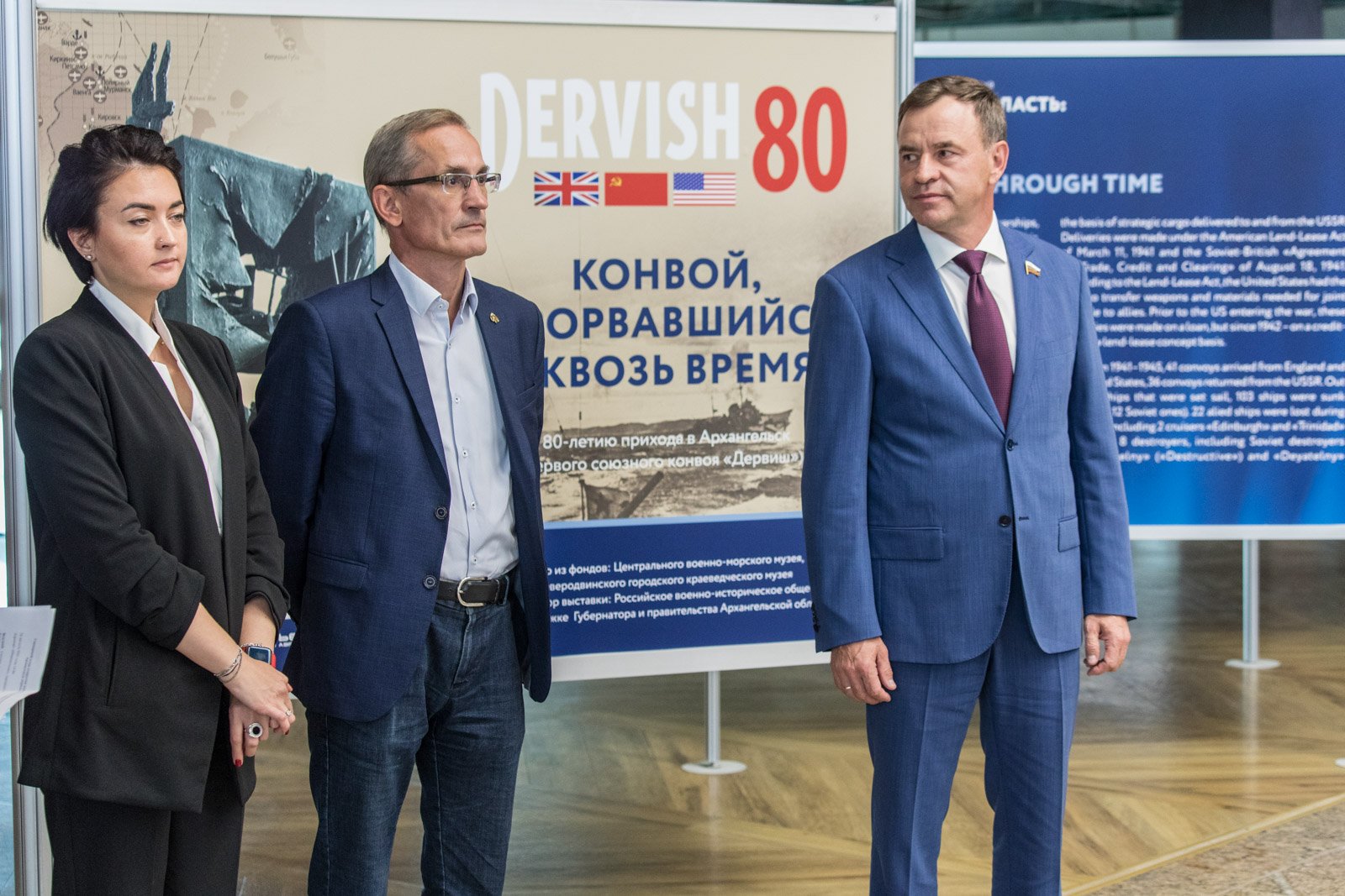 Сегодня в Международном аэропорту «Шереметьево» в Москве состоялась церемония открытия фотовыставки «Дервиш – 80», приуроченной к юбилею прихода в столицу Поморья первого союзного конвоя.
