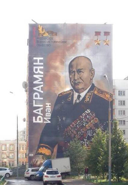 В рамках арт-проекта Российского военно-исторического общества граффити с изображением Маршала Советского Союза Ивана Баграмяна размещено на жилом доме на улице Маршала Баграмяна в Москве.
