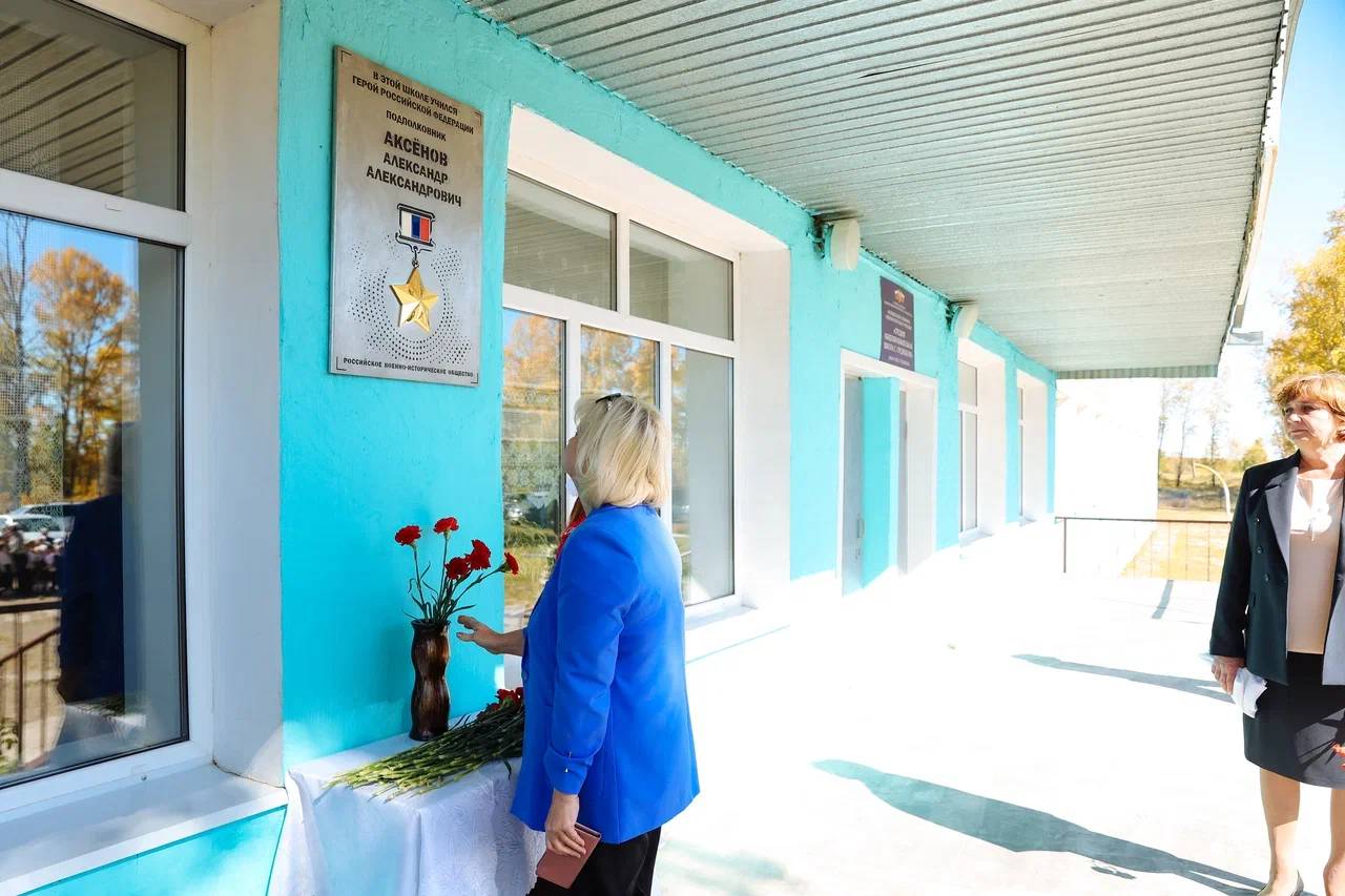 Памятную доску в честь Героя России Александра Аксенова открыли на фасаде школы в селе Среднебелое Ивановского округа.