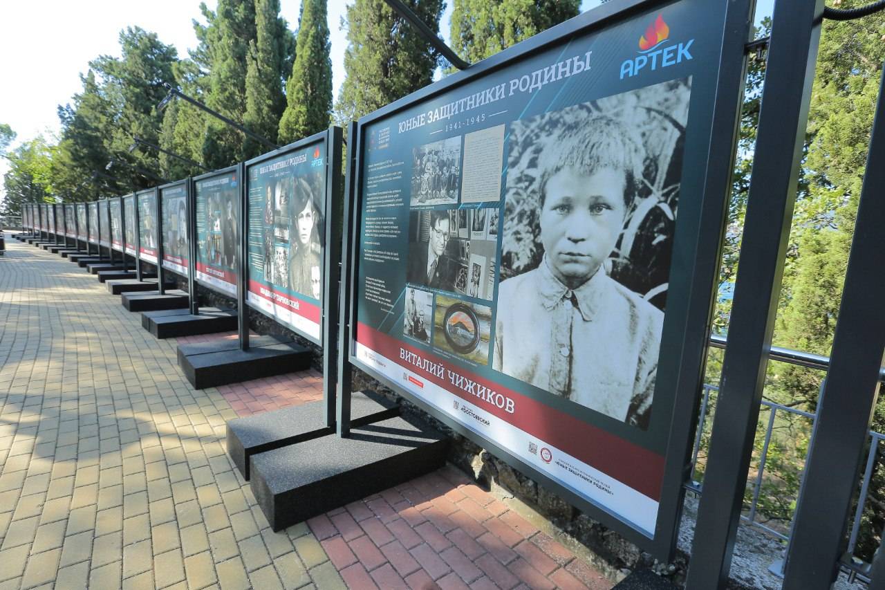 В международном детском центре «Артек» состоялось торжественное открытие выставки «Юные защитники Родины», посвященной вкладу детей и подростков в Великую Победу.