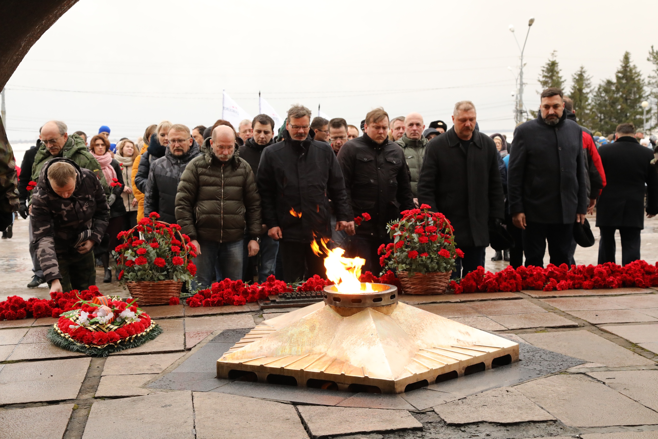 Перед пленарным заседанием участники возложили цветы к мемориалу Вечный огонь.
