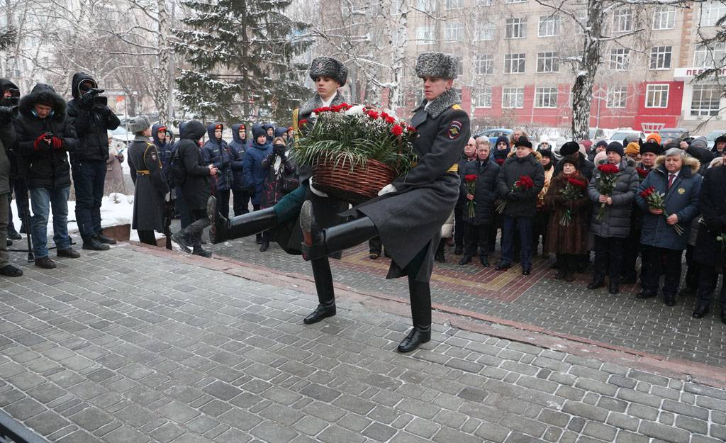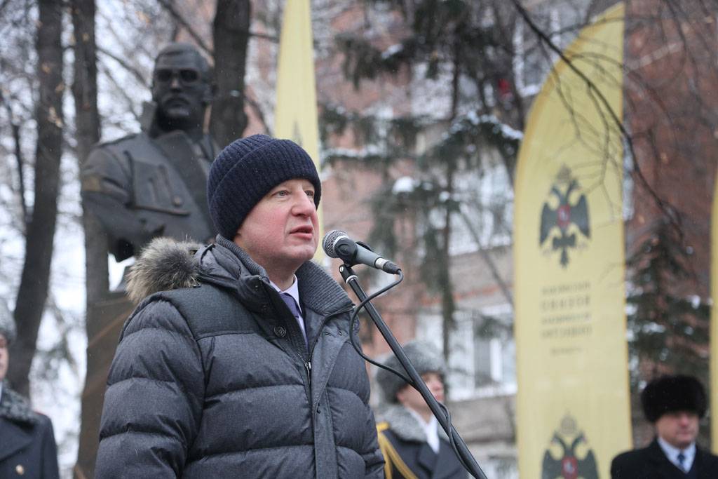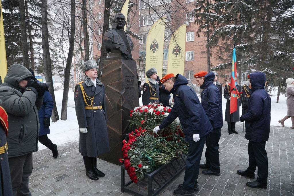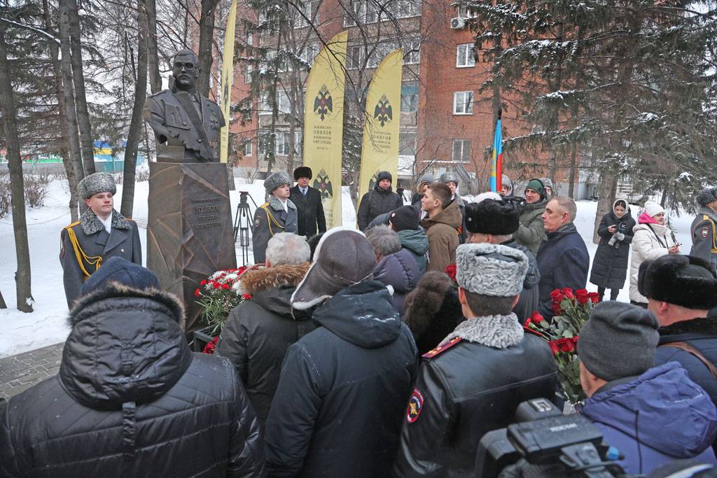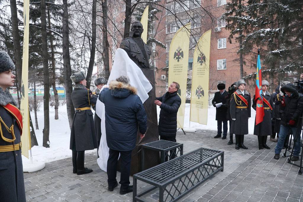 Почётное право официально открыть бюст предоставили Главе города Барнаула Вячеславу Франку и заместителю Председателя Российского военно-исторического общества Николаю Овсиенко.
