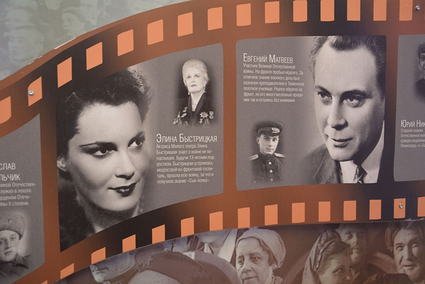 Вниманию жителей и гостей города представлен съемочный реквизит, оружие, флаги и знамена, военная форма разных лет. На стендах размещены редкие и архивные фотографии актеров, кадры из кинофильмов, информация о любимых актерах-фронтовиках. Юрий Никулин, Анатолий Папанов, Алексей Смирнов, Зиновий Гердт - на примере киногероев этих великих советских актеров выросло не одно поколение, но лишь немногие знают, что они прошли через ужасы войны.