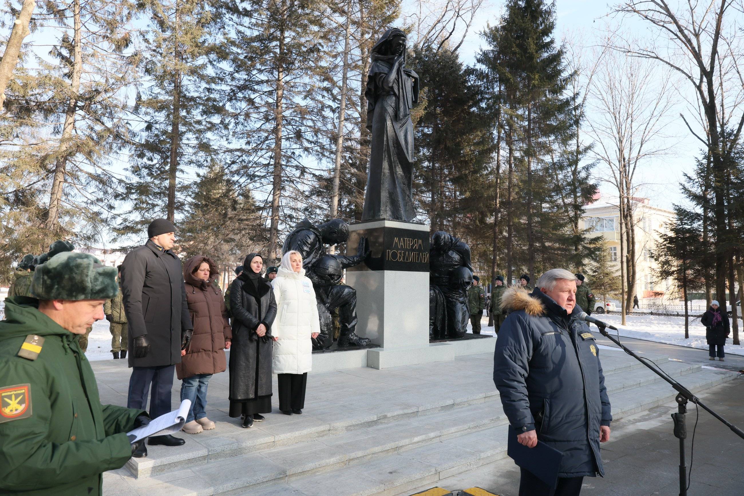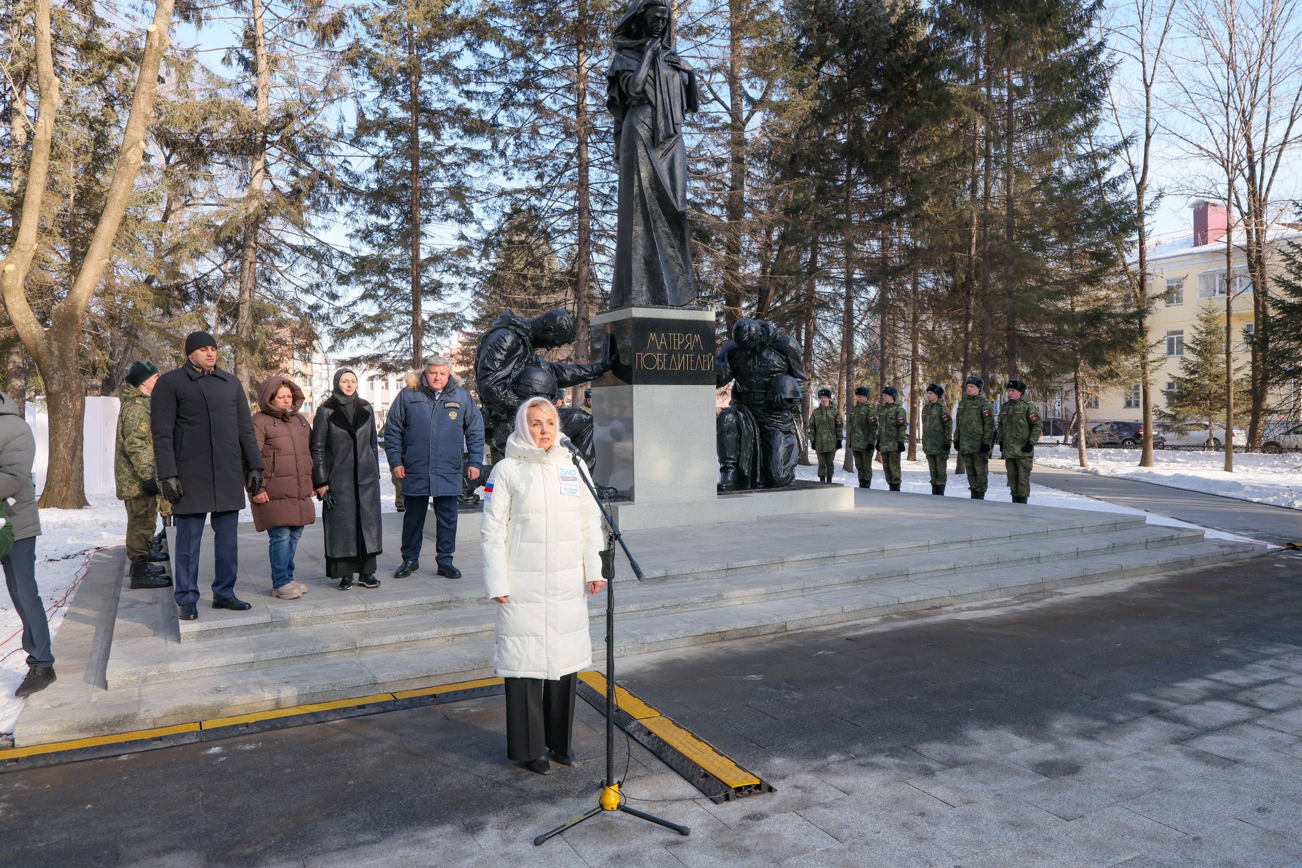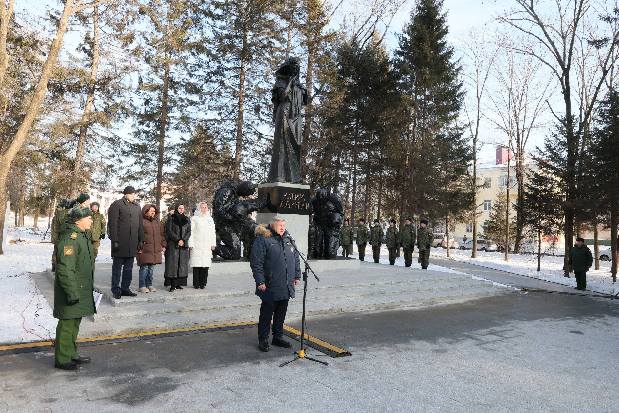 В Биробиджане в сквере Победы в День Героев Отечества состоялось торжественное открытие памятника «Матерям Победителей».