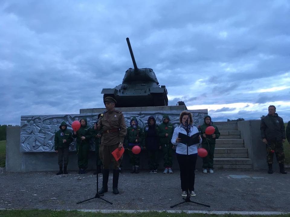 Памятные мероприятия в музее-заповеднике «Бородинское поле» прошли ранним утром у мемориала танку Т-34. В рамках проведения акции «…ровно в четыре часа…», участники смены лагеря Российского военно-исторического общества «Бородино-2017» возложили цветы и свечи к памятнику воинам 5-й армии, сражавшимся на Бородинском поле в октябре 1941 г. и январе 1942 г, а также всех, кто отдал свою жизнь, защищая Родину, умер от ран, мучений, пыток и голода.