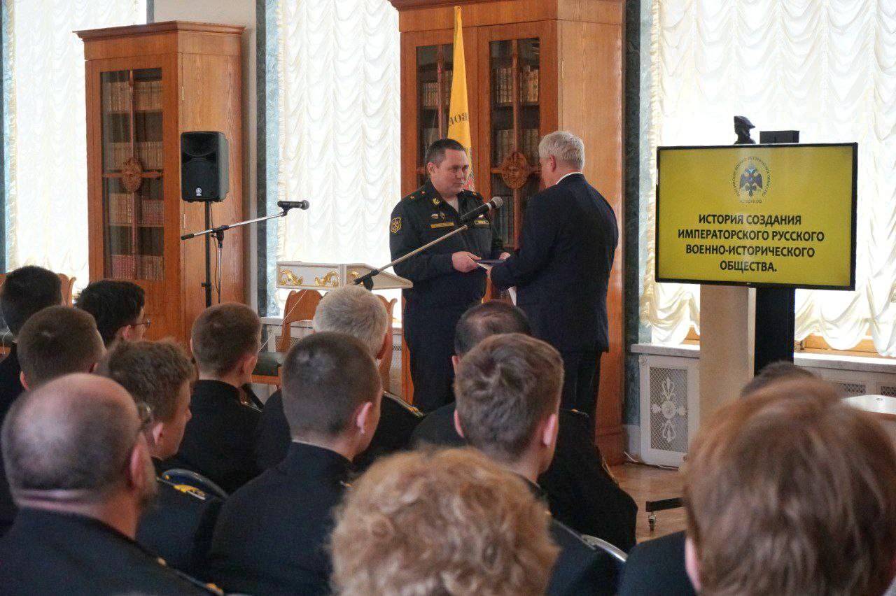 Приветствие в адрес участников конференции также направил Главнокомандующий Военно-Морским Флотом РФ, адмирал Николай Евменов. В обращении он выразил слова благодарности и искренней признательности коллективу Общества за большую и многоплановую работу по сохранению военной истории и героических традиций Российского флота. Слова приветствия зачитал заместитель Главнокомандующего Военно-Морским Флотом РФ по военно-политической работе, начальник политуправления флотом контр-адмирал Владислав Павлов.