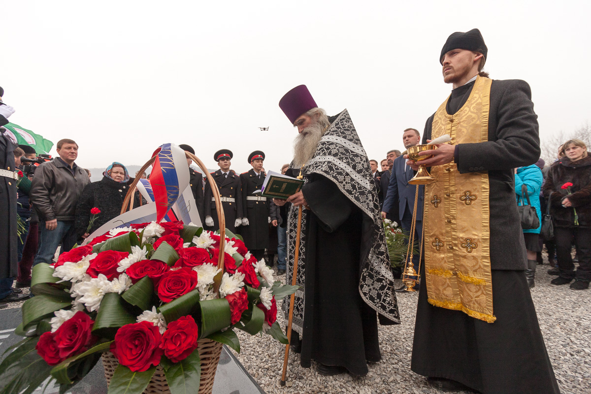 Участники церемонии почтили память бойцов 6-й роты минутой молчания и возложили цветы к подножию поклонного креста.