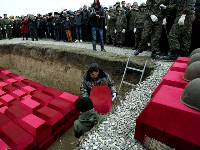 23 февраля, в День защитника Отечества, в Чеченской республике состоялось массовое перезахоронение советских воинов. Земле с отданием воинских почестей были преданы останки 82 красноармейцев, погибших в боях с фашистами. На церемонию перезахоронения, как сообщает ряд федеральных СМИ со ссылкой на ИТАР-ТАСС, собралось более одной тысячи человек.